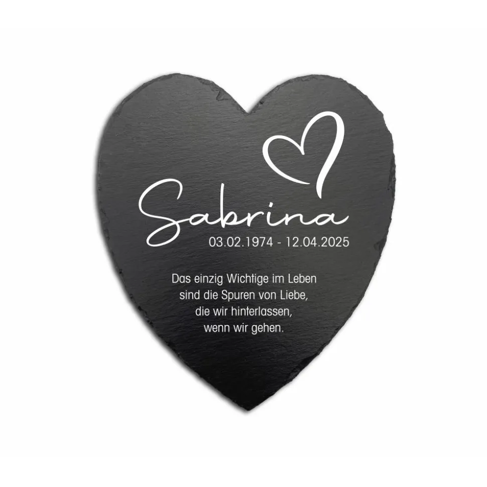 Individuell gravierte Schiefertafel in Herzform – wetterfester Gedenkstein & Grabstein handgemacht
