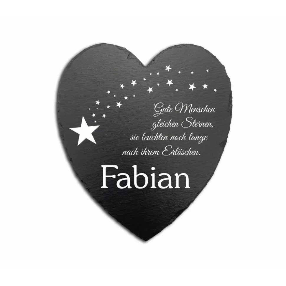 Individuell gravierte Schiefertafel in Herzform – wetterfester Gedenkstein & Grabstein handgemacht