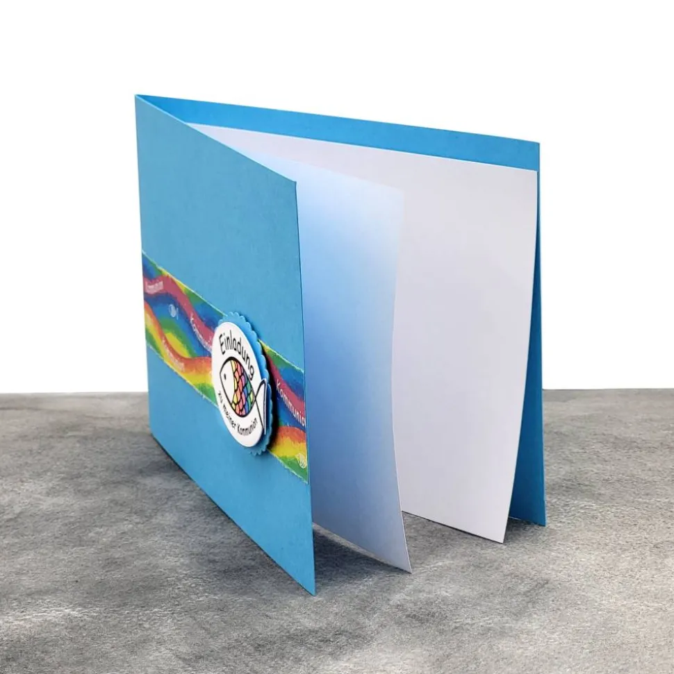 Individuelle Einladungskarte Regenbogen Fisch zur Kommunion, Taufe, Konfirmation & Firmung