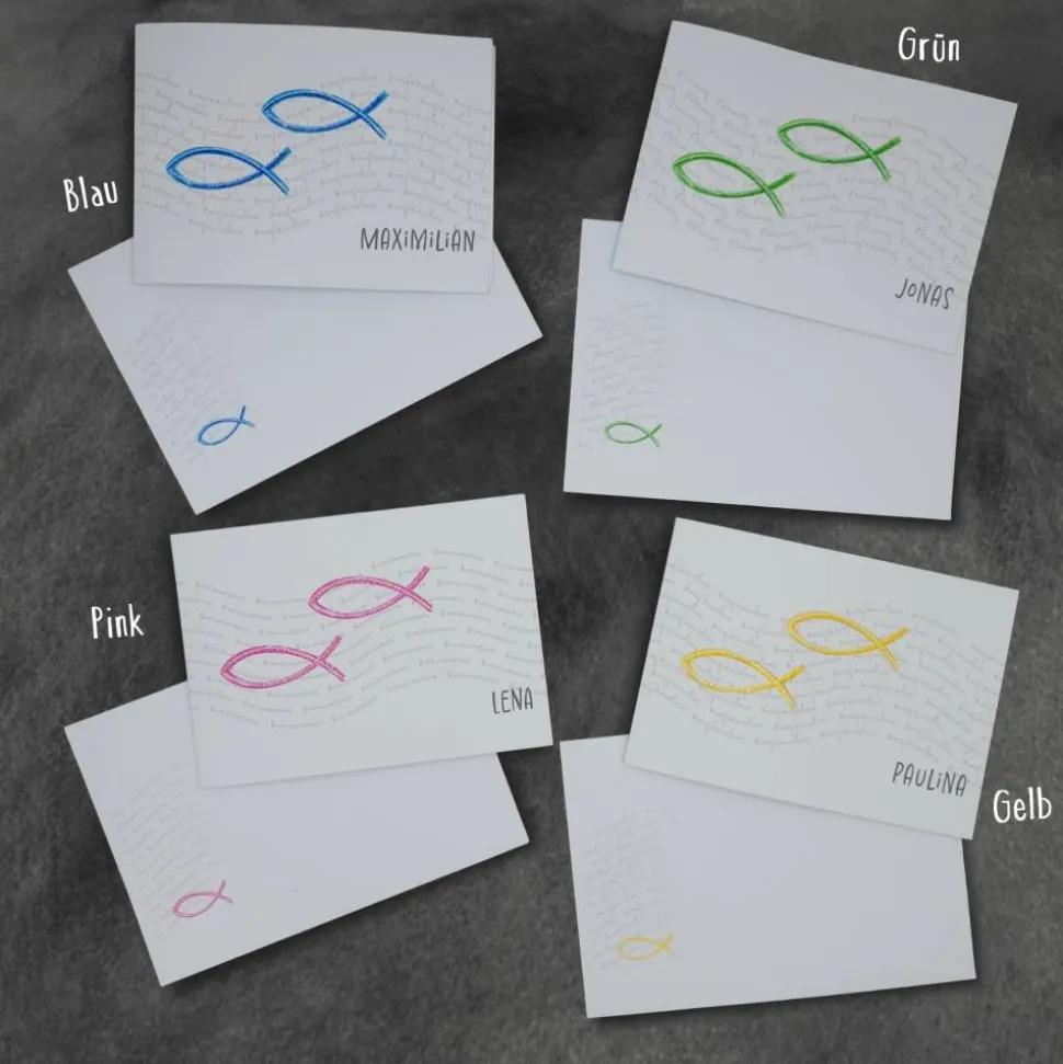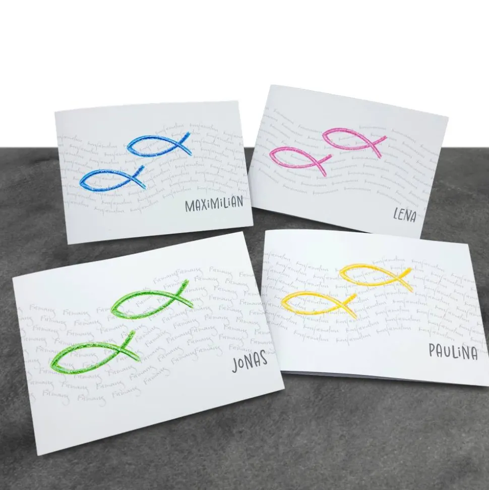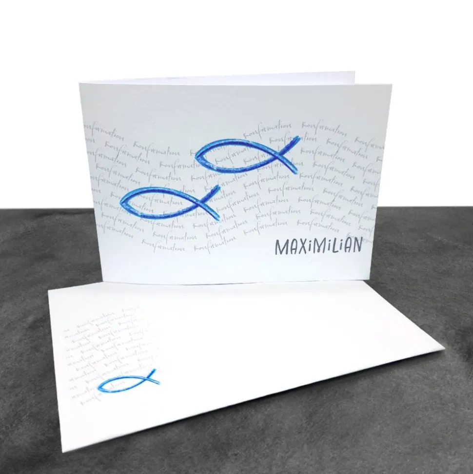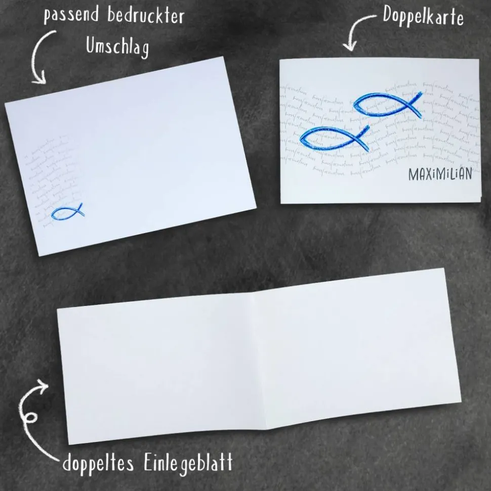 Deine persönliche Einladungskarte zur Konfirmation, Kommunion oder Firmung im stilvollen „Fische“-Design!
