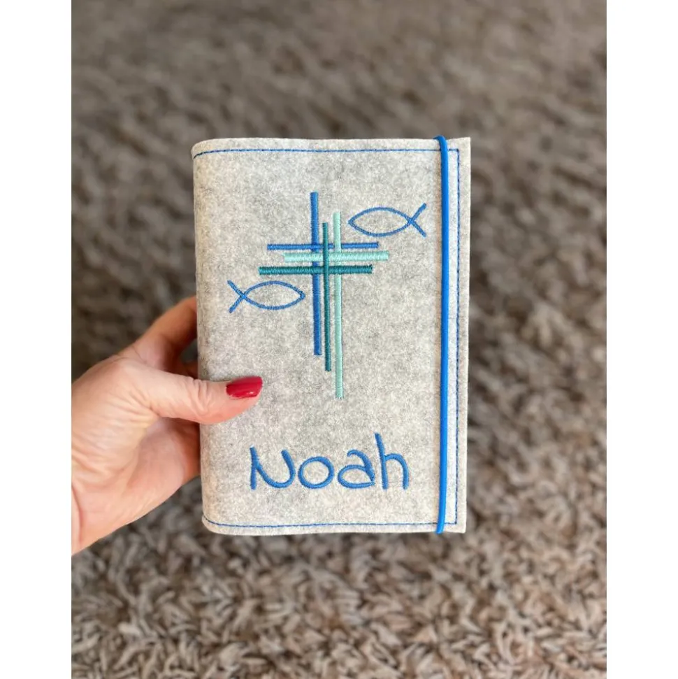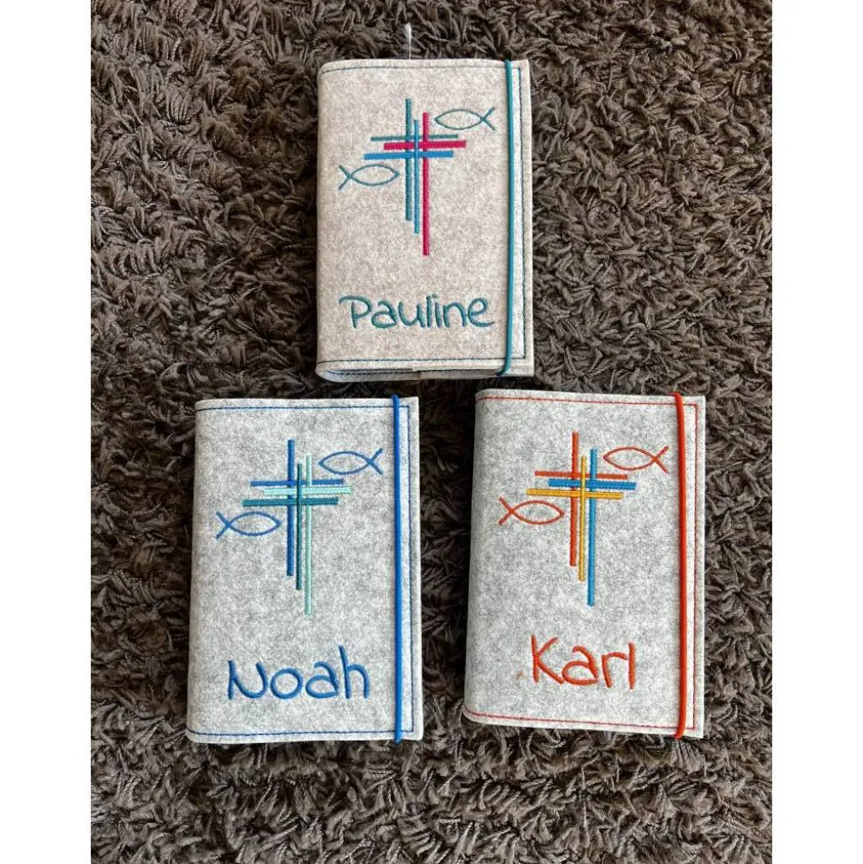 Schütze dein Gotteslob stilvoll mit einer einzigartigen Gotteslobhülle aus hochwertigem, 3mm starkem Polyesterfilz (100%), liebevoll handgefertigt in Deutschland. Wähle aus verschiedenen Farben und passe deine Hülle individuell an: Bestimme die Schriftart, entscheide dich für einen Druckknopf oder ein Gummiband als Verschluss und wähle deine Lieblingsfarbe für den Filz. Die Farben deines gewählten Designs werden exakt übernommen und mit Markenstickgarn aufwendig bestickt – kein Aufdruck, sondern echte Handarbeit für langanhaltende Freude.