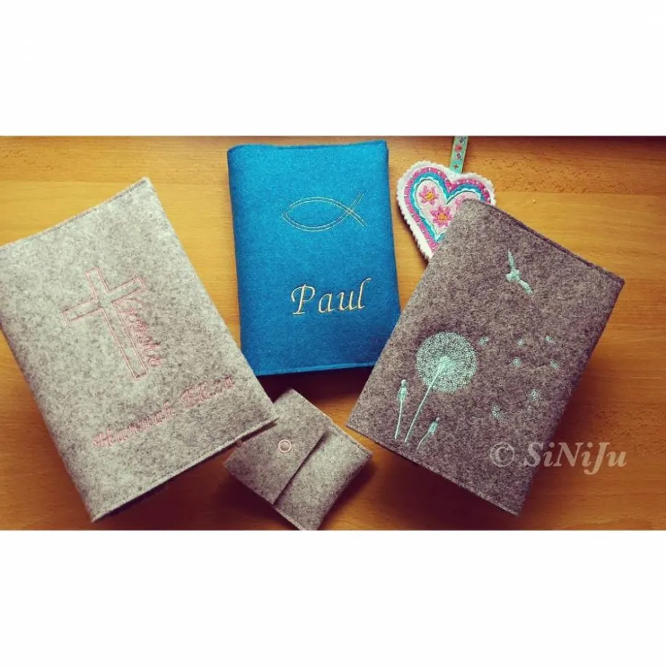 Individuelle Gotteslobhuelle  aus Wollfilz, personalisiert bestickt