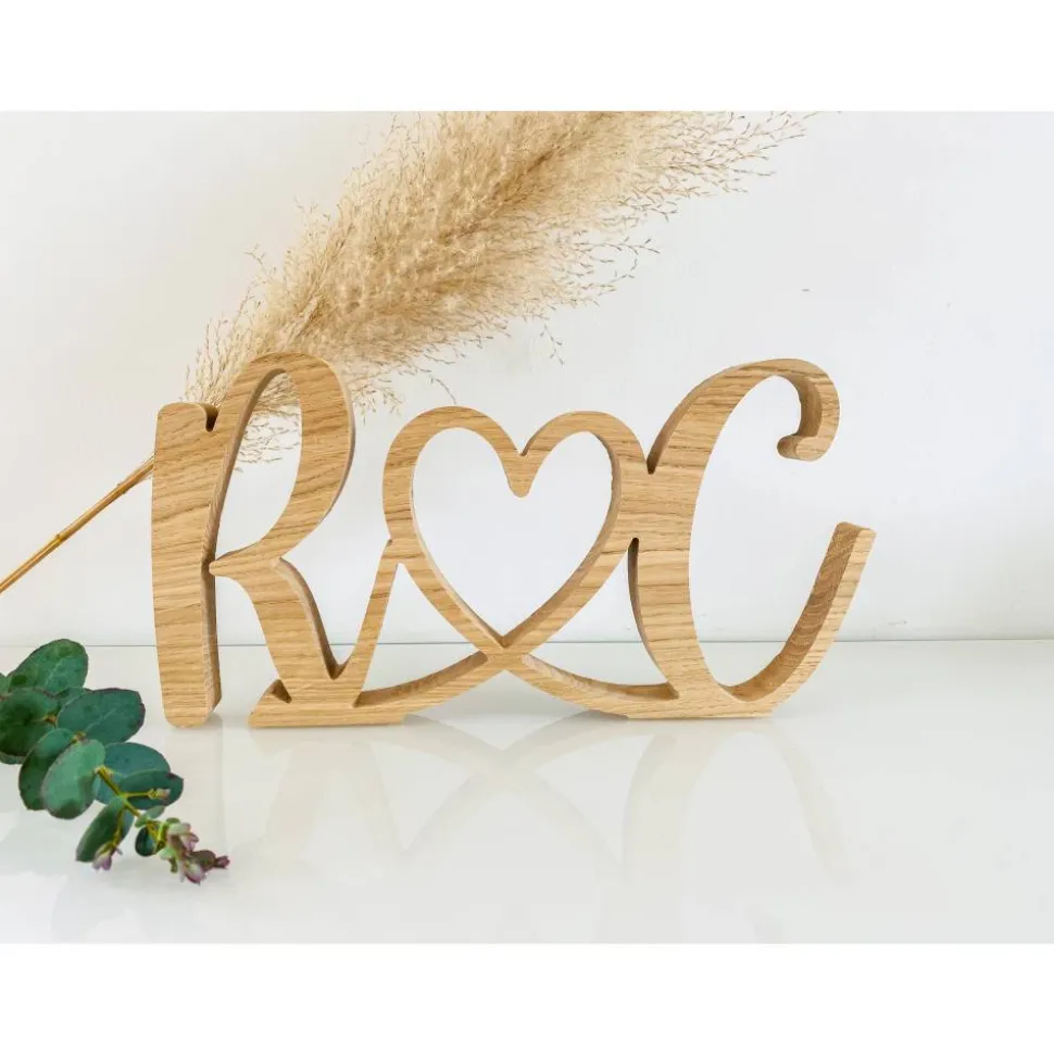Wir fertigen Eure Initialen für Euch aus massivem, unbehandeltem Eichenholz.