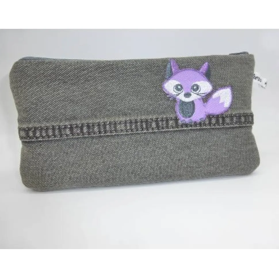 Upcycling einer grauen Jeans, appliziert mit einem kleinen Fuchs.