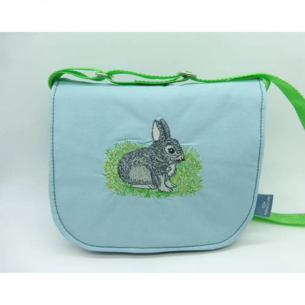 Passend zum frischen Gras beim Häschen, wurde das grasgrüne Gurtband gewählt.