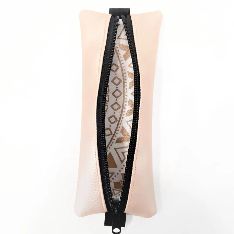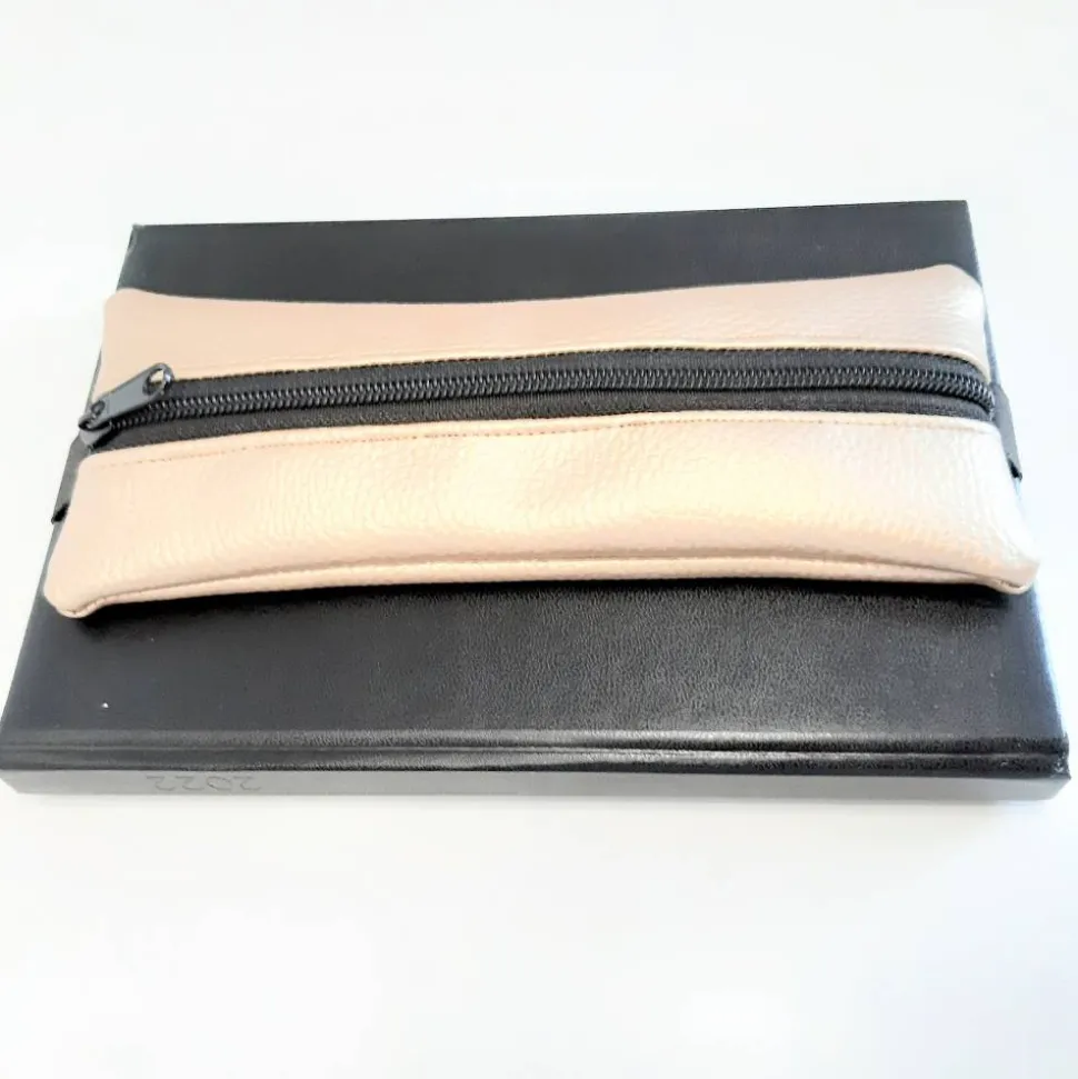 Oftmals gibt es für Notizbücher, Kalender, Rätselbücher, Tagebücher, Tablet und Kladden keine Gummilasche für den Kugelschreiber oder man benötigt einfach mehr Stifte und ein Lineal, Schere, Marker usw. Ein kleines Mäppchen am Notizbuch ist da ganz praktisch. Weiter kann das Mäppchen auch als Lesezeichen verwendet werden.