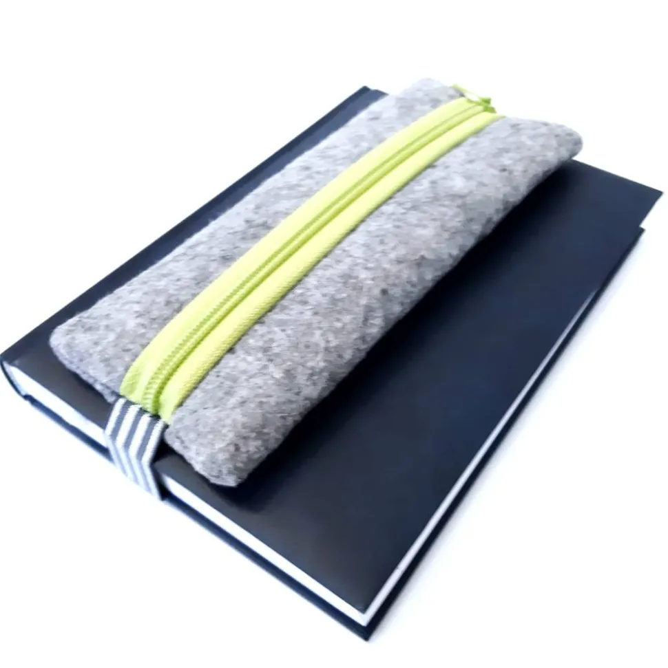 Oftmals gibt es für Notizbücher, Kalender, Rätselbücher, Tagebücher, Tablet und Kladden keine Gummilasche für den Kugelschreiber oder man benötigt einfach mehr Stifte und ein Lineal, Schere, Marker usw. Ein kleines Mäppchen am Notizbuch ist da ganz praktisch. Weiter kann das Mäppchen auch als Lesezeichen verwendet werden.