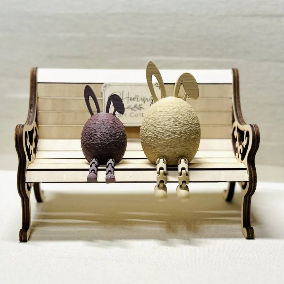 Das Osterei mit Hasenöhrchen hat flexible Baumelbeinchen und passt perfekt auf Regale, Fensterbänke, Kommoden.
