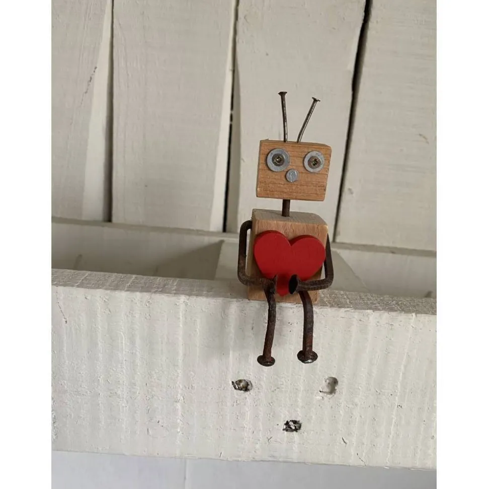 Kantensitzer mit Herz, Holzfigur Roboter, kleines Geschenk,