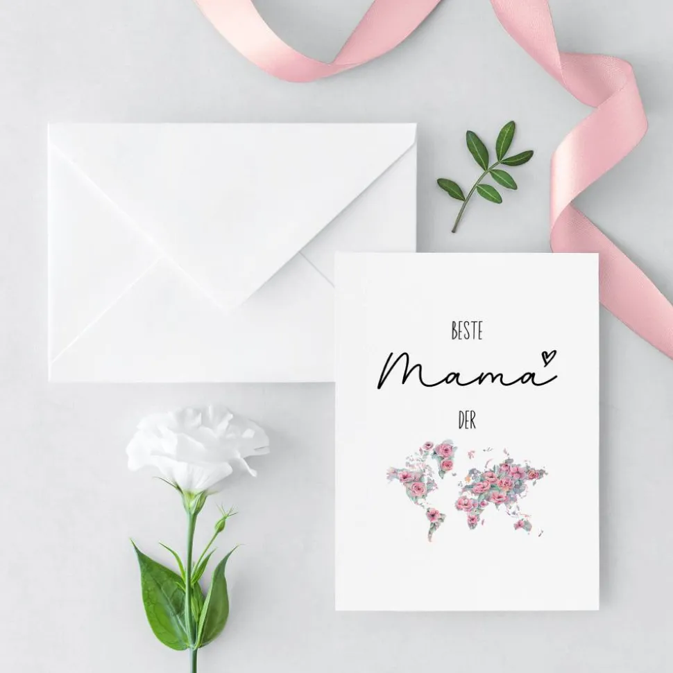 Die Karte in der Größe DIN A6 ist optional mit einem weißen oder braunen Umschlag aus Kraftpapier erhältlich.