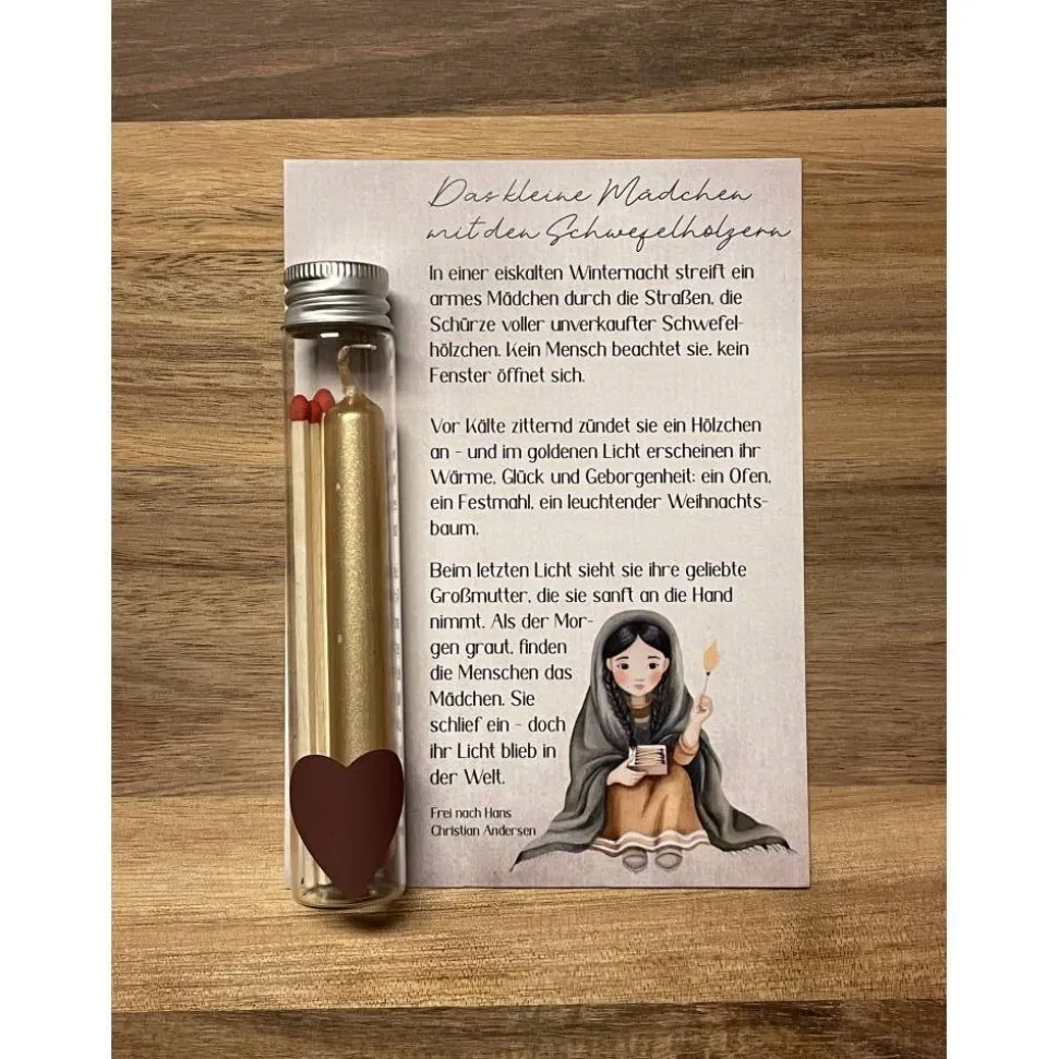 Diese besondere Karte ist inspiriert von Hans Christian Andersens „Das kleine Mädchen mit den Schwefelhölzern“ – einem Märchen über Licht, Hoffnung und Menschlichkeit.