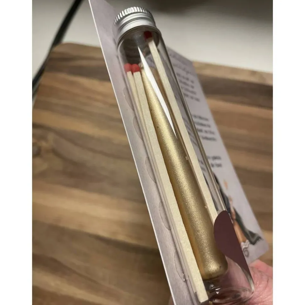 - Reagenzglas mit Schraubverschluss, goldene Mini-Kerze & Streichhölzer