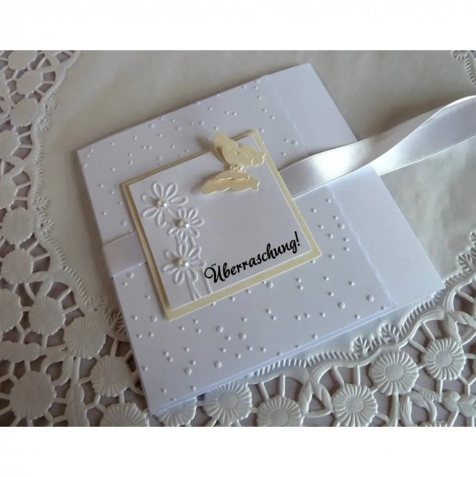 Kartenpapier, Tonkarton, Halbperlen, Satinband