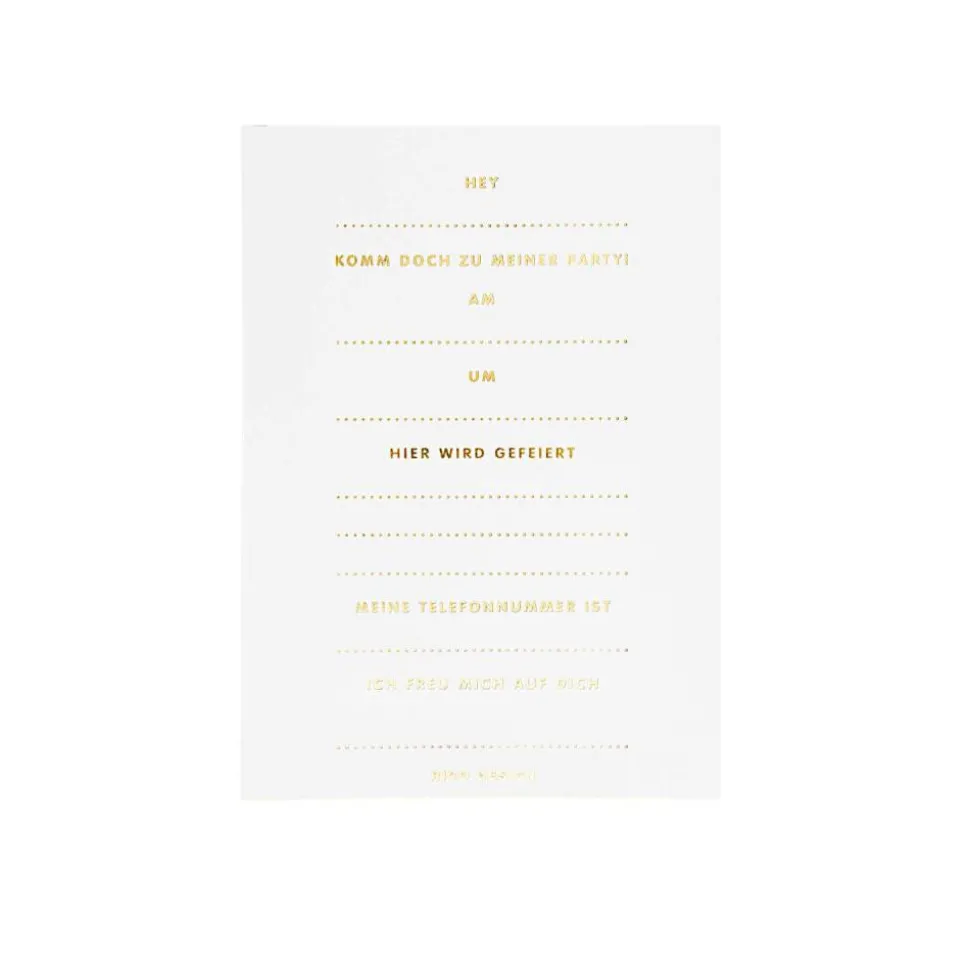 In dem Block sind 10 bereits vorgedruckte Einladungskarten enthalten. Die Vorderseiten sind in 5 Designs gestaltet. Die Rückseite ist vorgedruckt und kann individuell ausgefüllt werden.