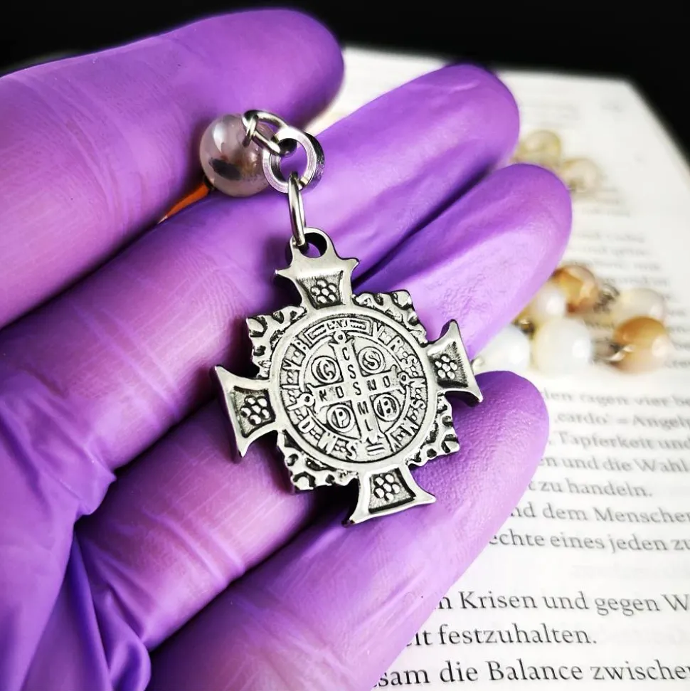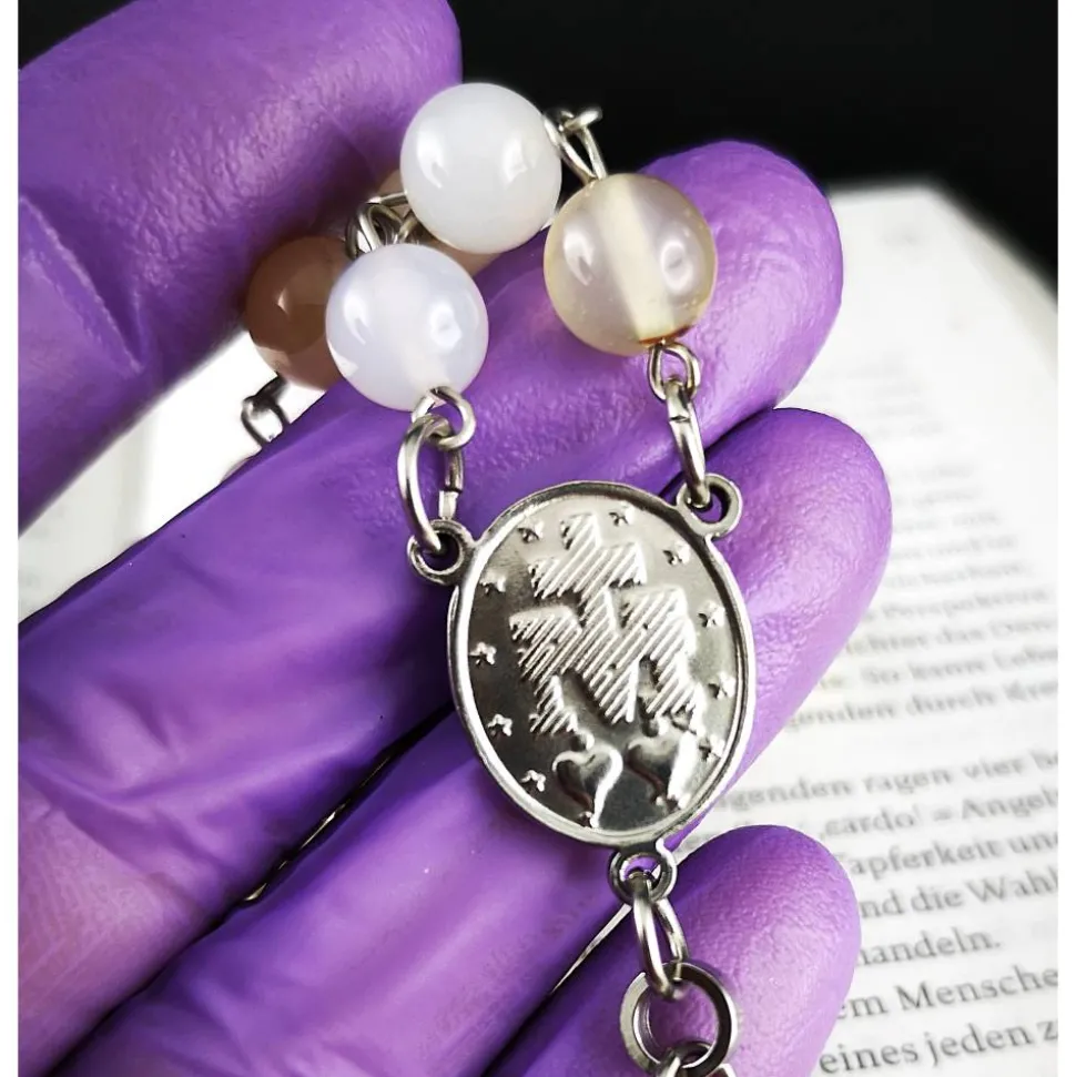 Entdecke einen katholischen Rosenkranz, der Tradition mit modernem Design vereint. Gefertigt aus edlen Achatperlen und massivem Edelstahl, ist dieser Rosenkranz nicht nur ein tiefes spirituelles Symbol, sondern auch ein elegantes Accessoire für deinen Alltag.