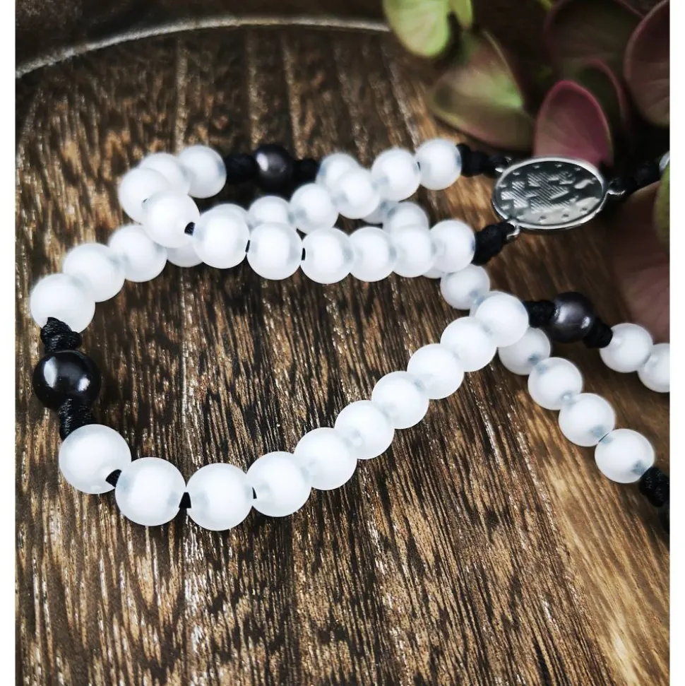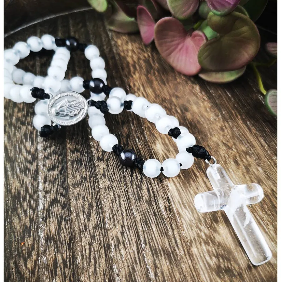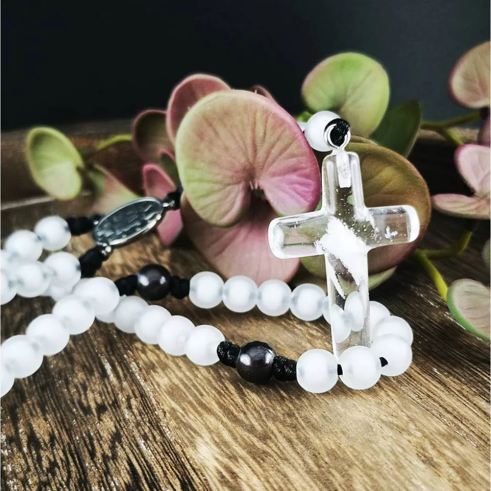 Gefertigt aus leichtem Acryl, eignet sich dieser Rosenkranz perfekt für unterwegs.
