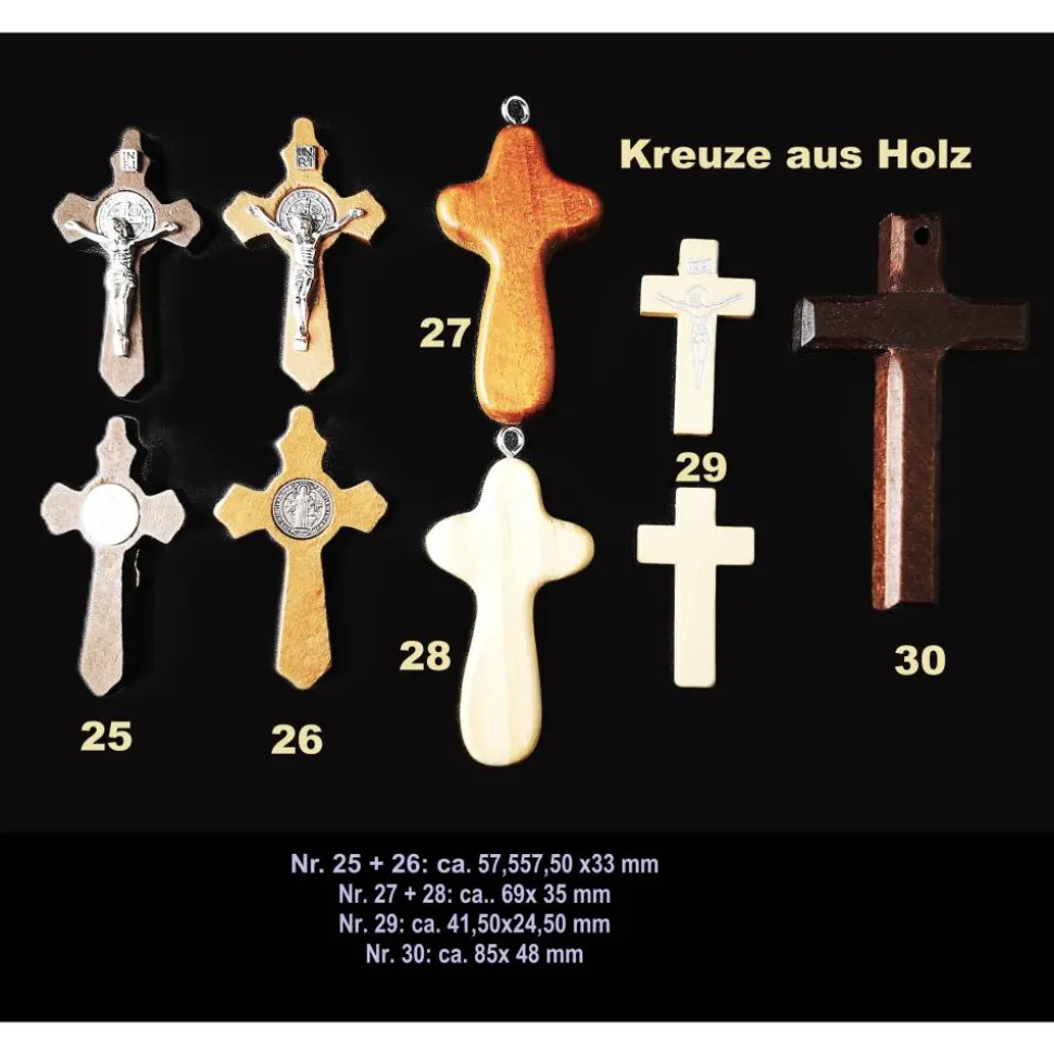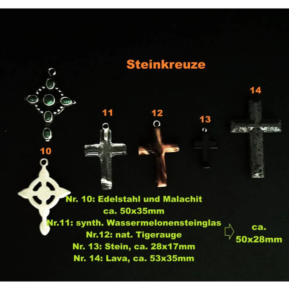 Es ist jedoch möglich, den Rosenkranz mit verschiedenen Kreuzausführungen herzustellen; auch mit Metallkreuzen, Holzkreuzen oder Edelstahlkreuzen.