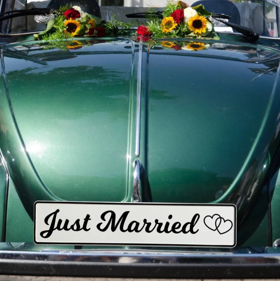Mach euren großen Tag unvergesslich mit einem einzigartigen Hochzeitskennzeichen! Unsere liebevoll gestalteten Kennzeichen sind die perfekte Dekoration für dein Hochzeitsauto, den Festsaal oder als originelles Fotorequisit. Das hochwertige Material sorgt für eine langanhaltende Erinnerung an den schönsten Moment in eurem Leben. Ob als romantisches Highlight am Brautauto, emotionaler Willkommensgruß an der Location oder als fantasievolles Geschenk für das Brautpaar: Dieses Hochzeitskennzeichen verbindet Persönlichkeit, Stil und bleibende Erinnerungen. Euer individuelles Hochzeitsaccessoire für bewundernde Blicke an eurer Traumhochzeit!
