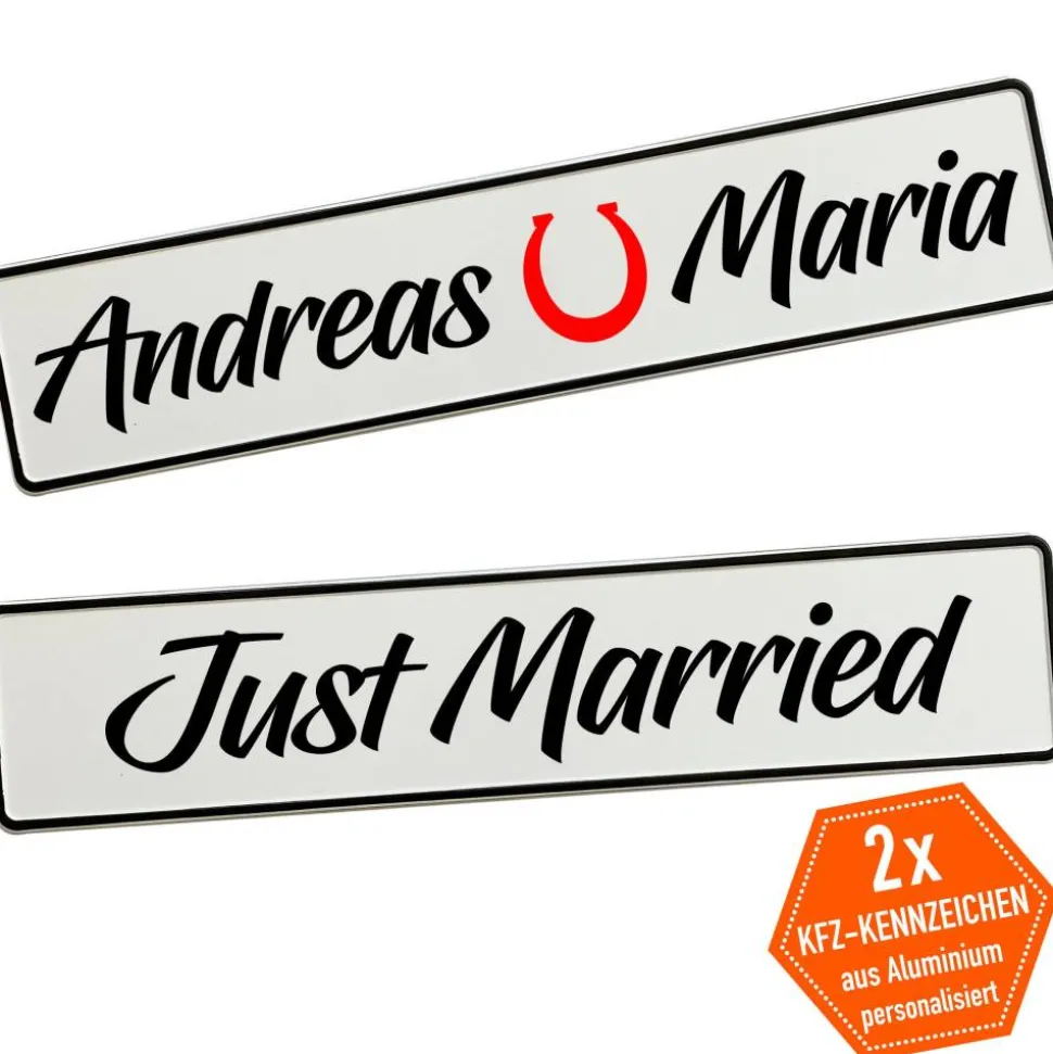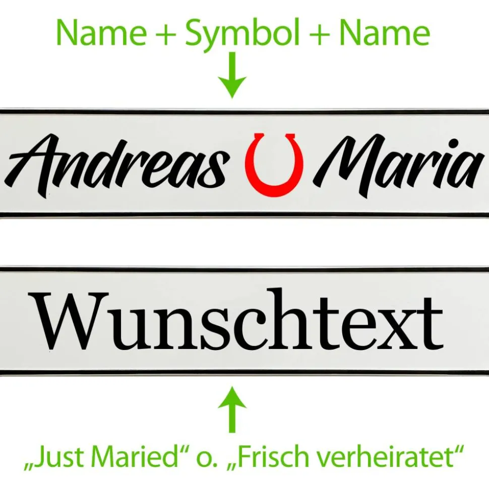 Kennzeichen Hochzeit mit Namen Deko Hochzeitsauto Hochzeitskennzeichen selbst gestalten Motiv Glück