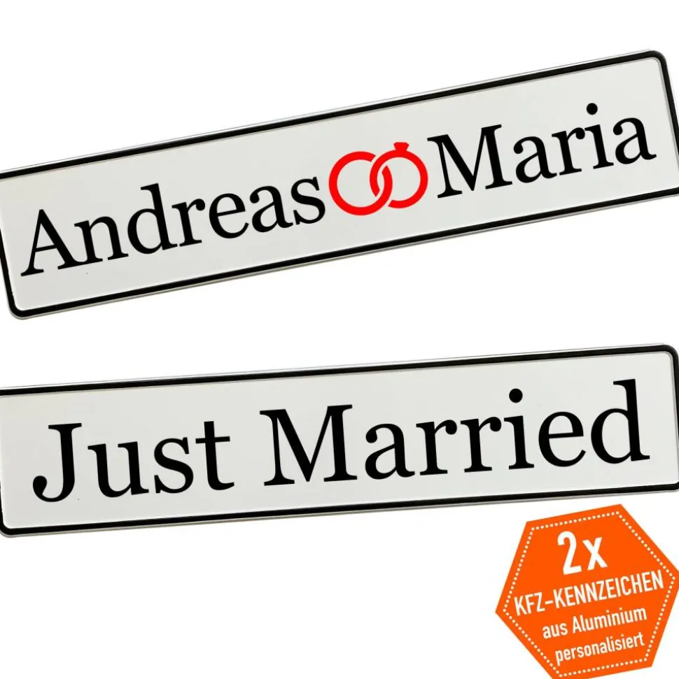 Du gibst einfach die gewünschten Namen an und wählst die passende Schriftart – wir fertigen dein persönliches Hochzeitskennzeichen mit viel Liebe zum Detail. Schon in kurzer Zeit hältst du deine individuelle Autodeko in den Händen.