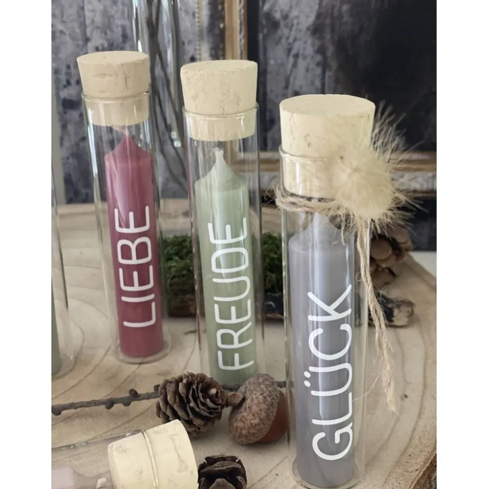 Du bist auf der Suche nach einem kleinen Geschenk für einen lieben Menschen… Oder einem Mitbringsel… Dann sind diese kurzen Stabkerzen im Glas einfach wunderbar.