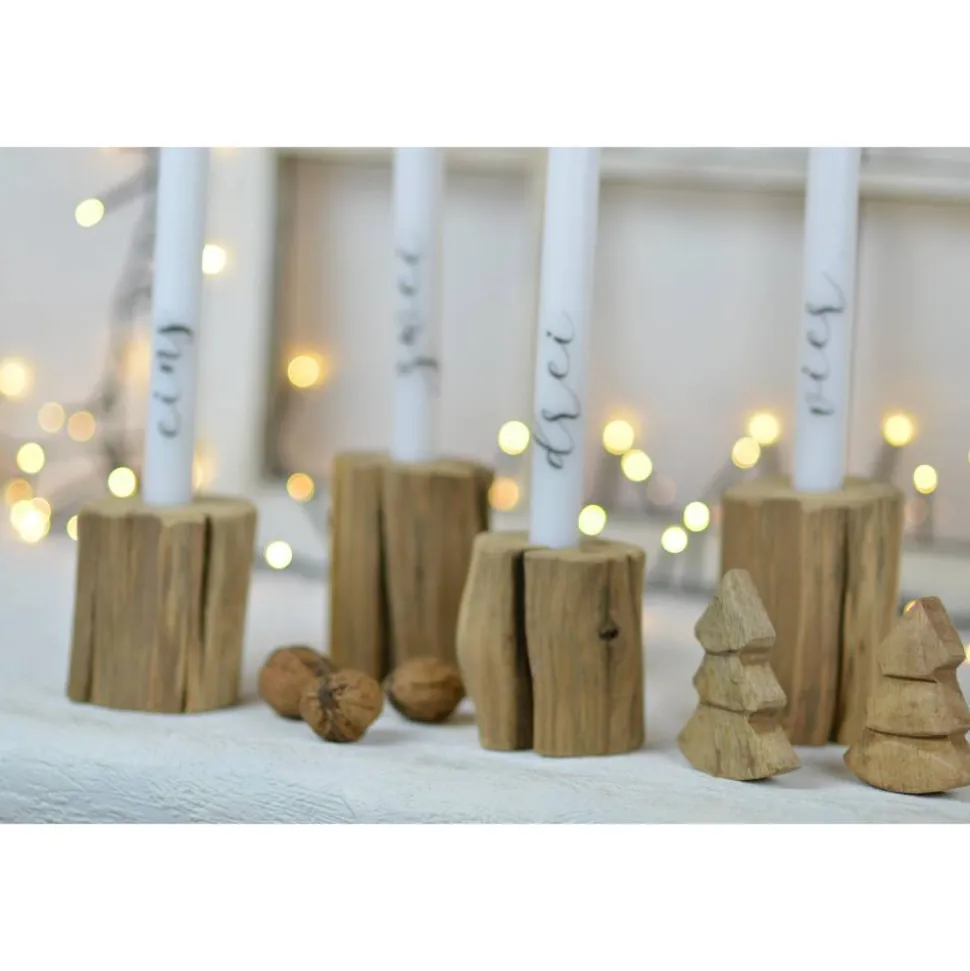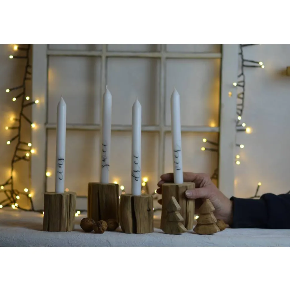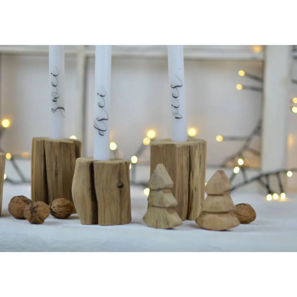 Es gibt die Kerzenständer in der Höhe 8 oder 9 cm, die Bohrung ist für eine normale Stabkerze geeignet.