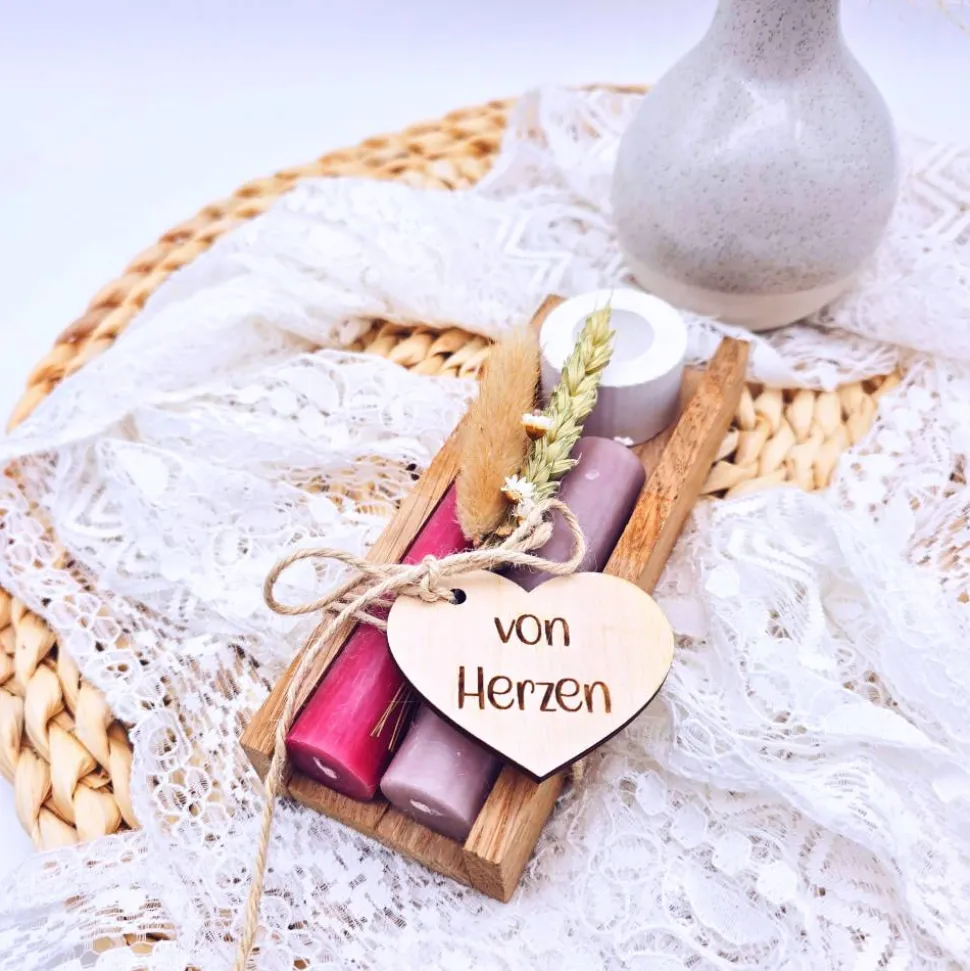 • Nachhaltige Holzverpackung: Die Kerzen kommen in einer hübschen Verpackung aus Holz. Sie sieht nicht nur toll aus, sondern macht das Geschenk auch besonders hochwertig.