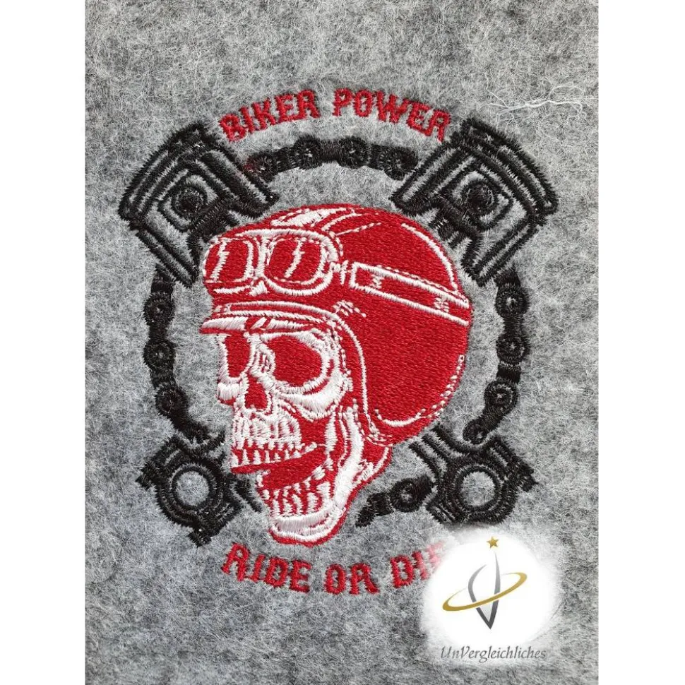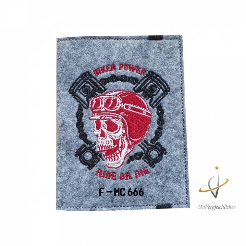 Die Hülle ist aus 2 mm dickem stabilen Filz genäht und mit eurem Wunschkennzeichen bestickt. Ein super individuelles Geschenk für jeden Anlass 😉