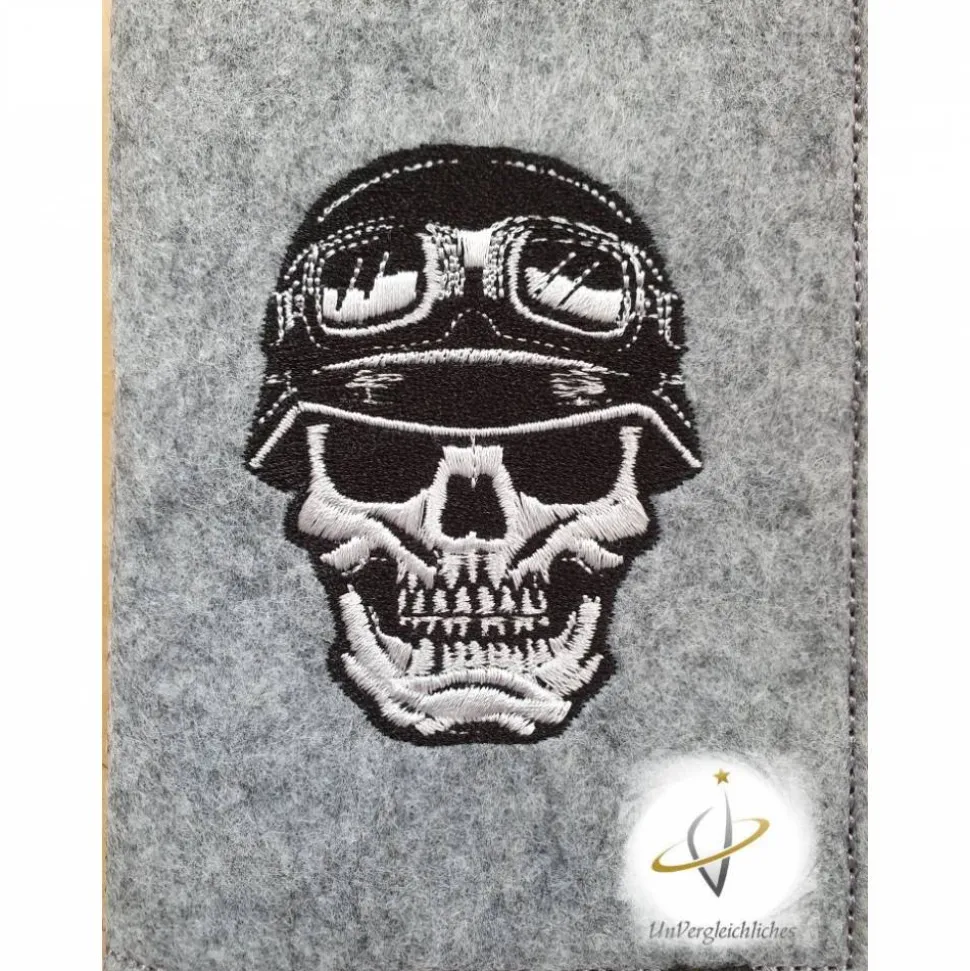 Die Hülle ist aus 2 mm dickem stabilen Filz genäht und mit eurem Wunschkennzeichen bestickt. Ein super individuelles Geschenk für jeden Anlass 😉