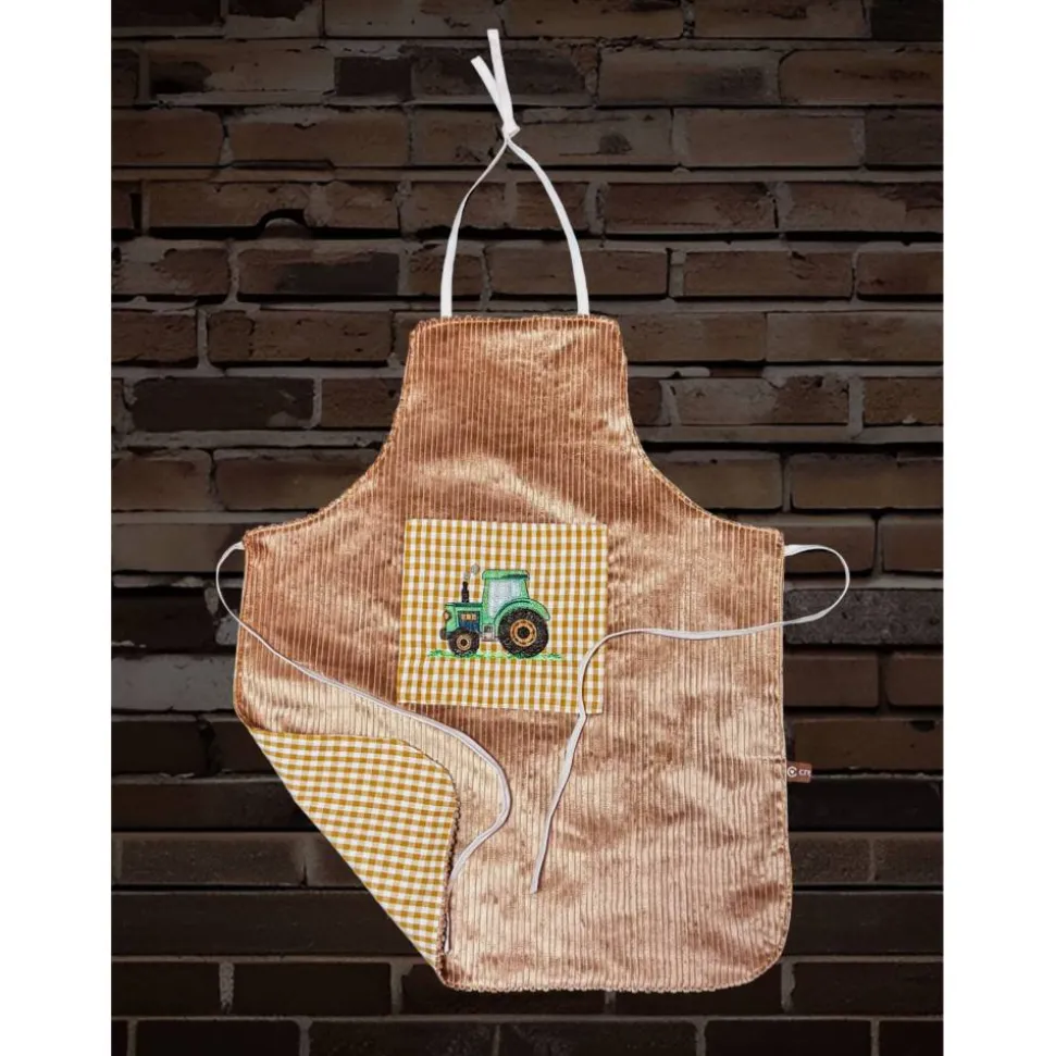 Diese liebevoll genähte Kinderschürze ist der perfekte Begleiter für alle kleinen Köche, Bäcker und Bastelfans und Traktorliebhabern und Liebhaberinnen!