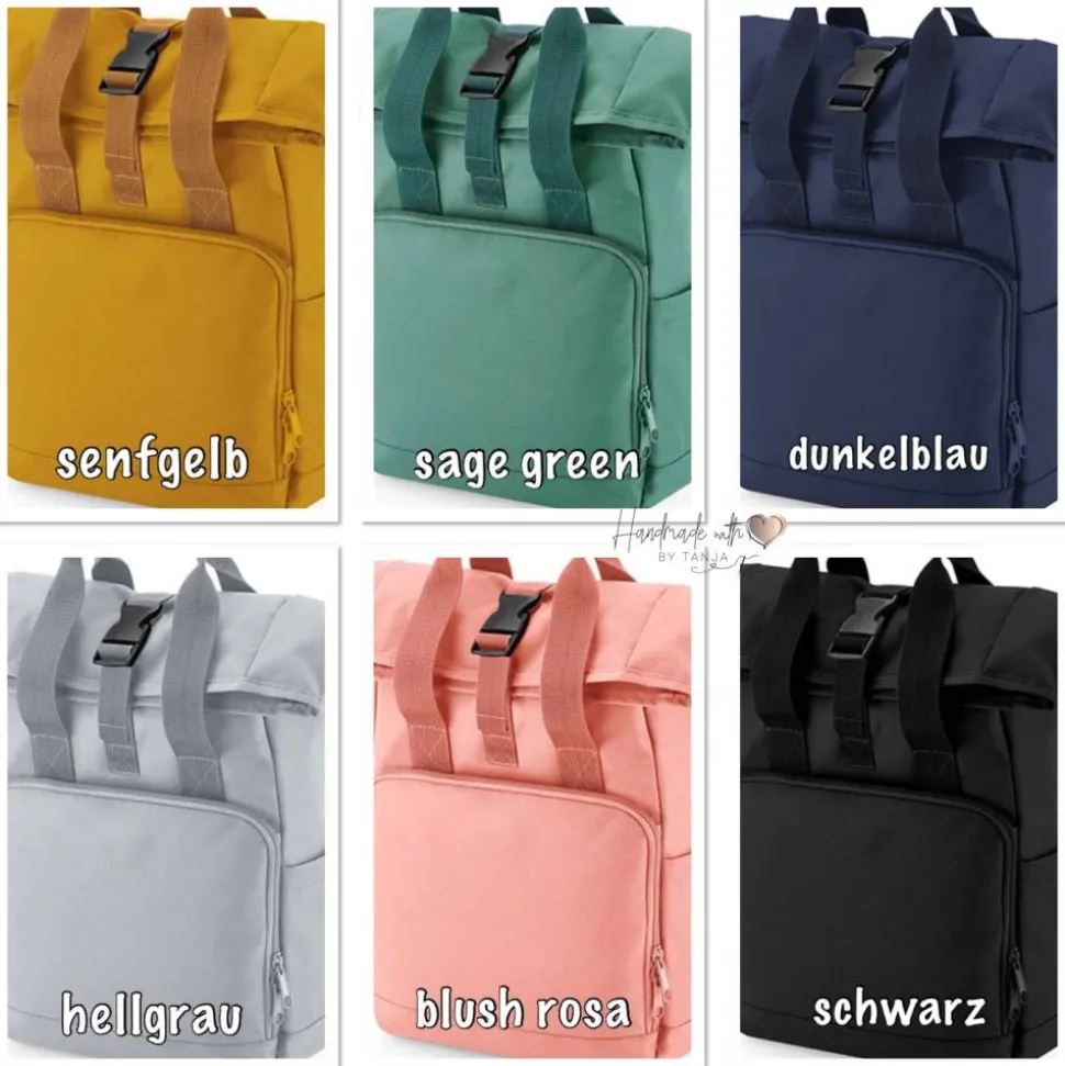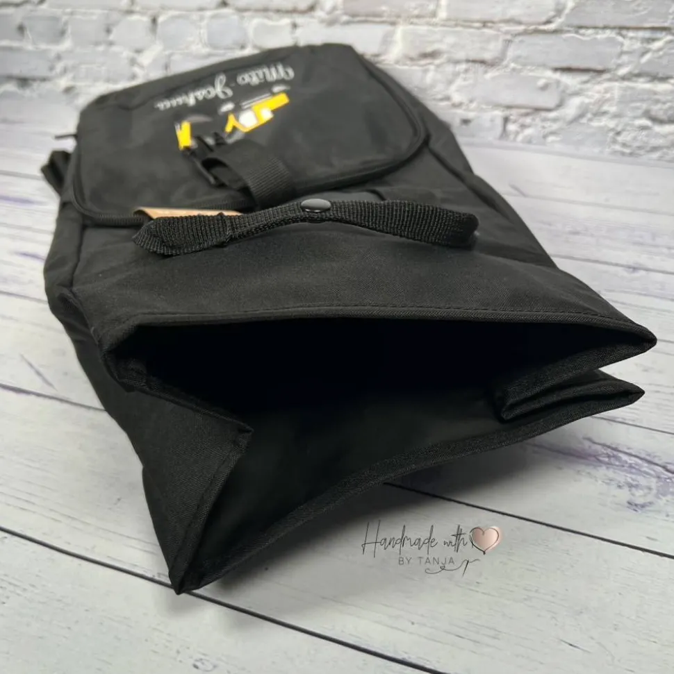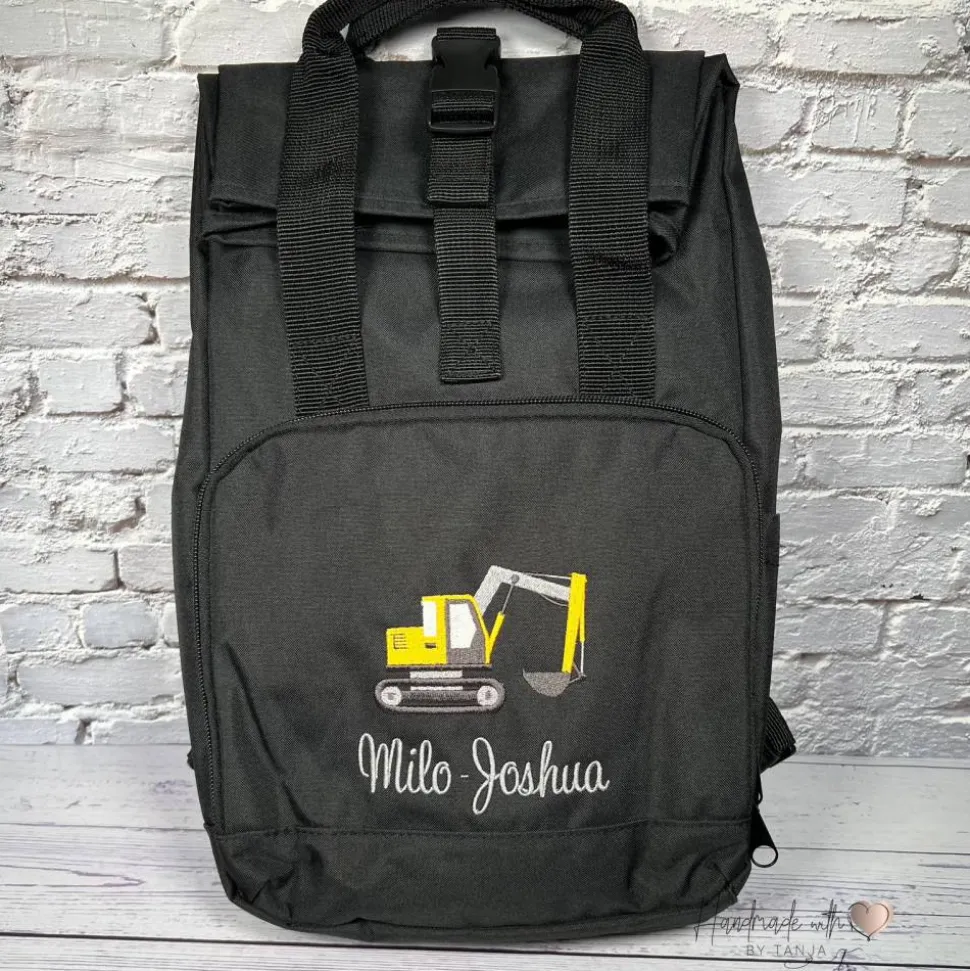 Dieser tolle Rolltop Rucksack wird von mir mit einem coolen Bagger und deinem Wunschnamen bestickt und ist ideal für Ausflüge, den Kindergarten oder die Tagesmutter.