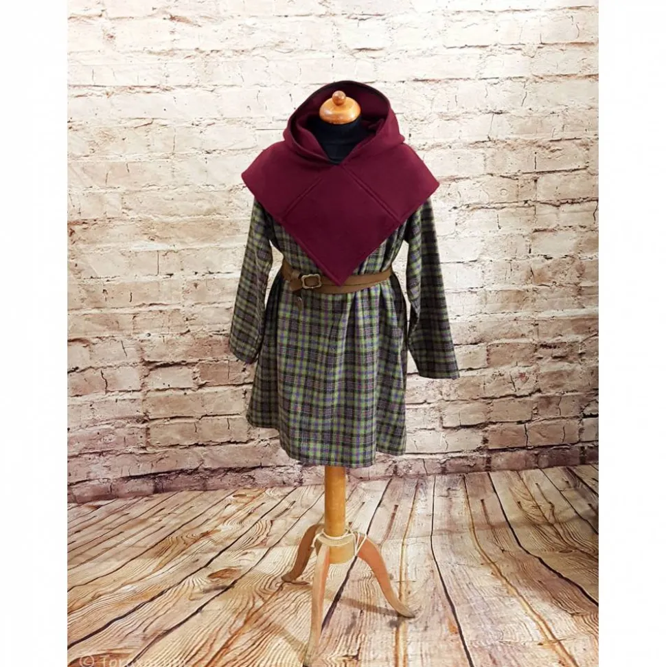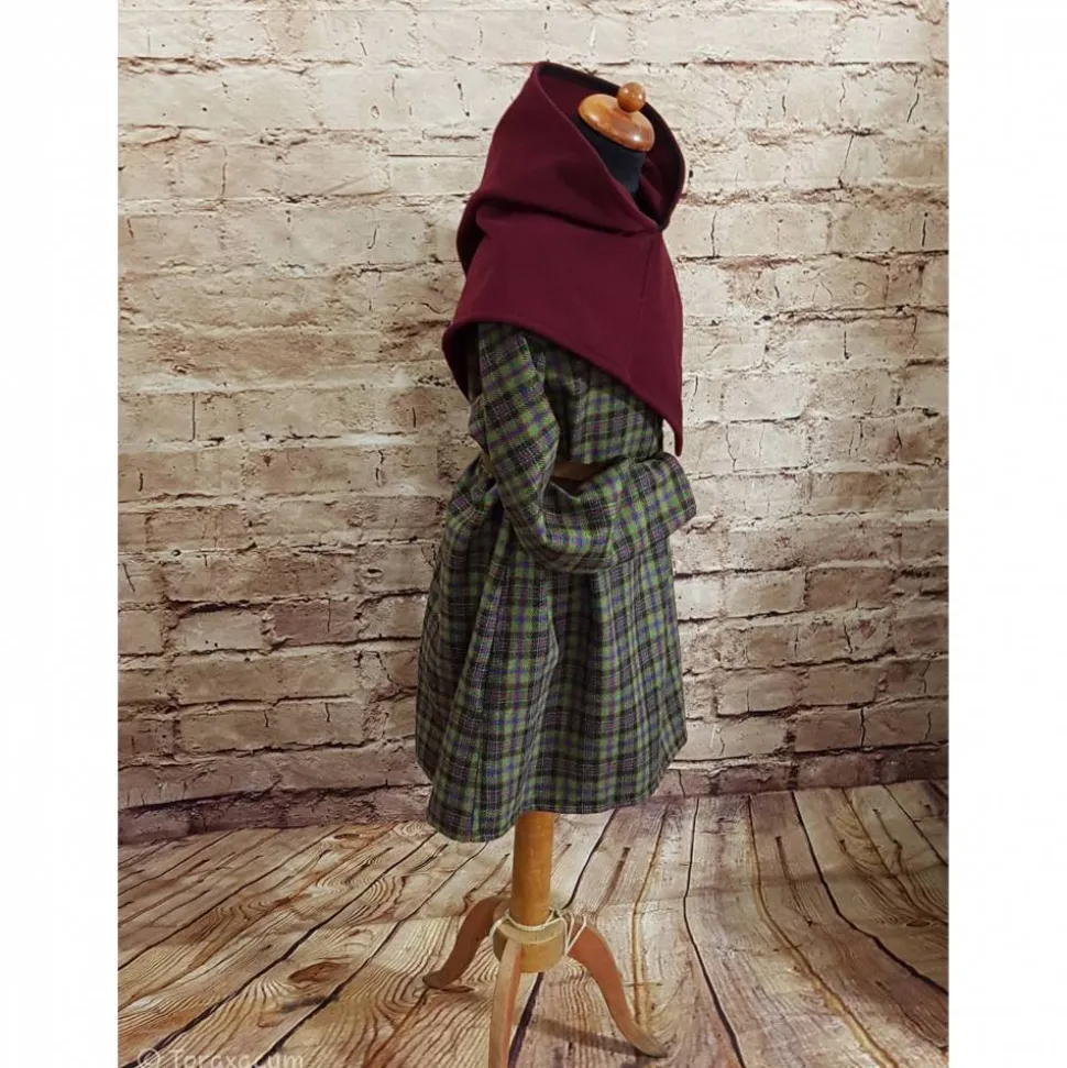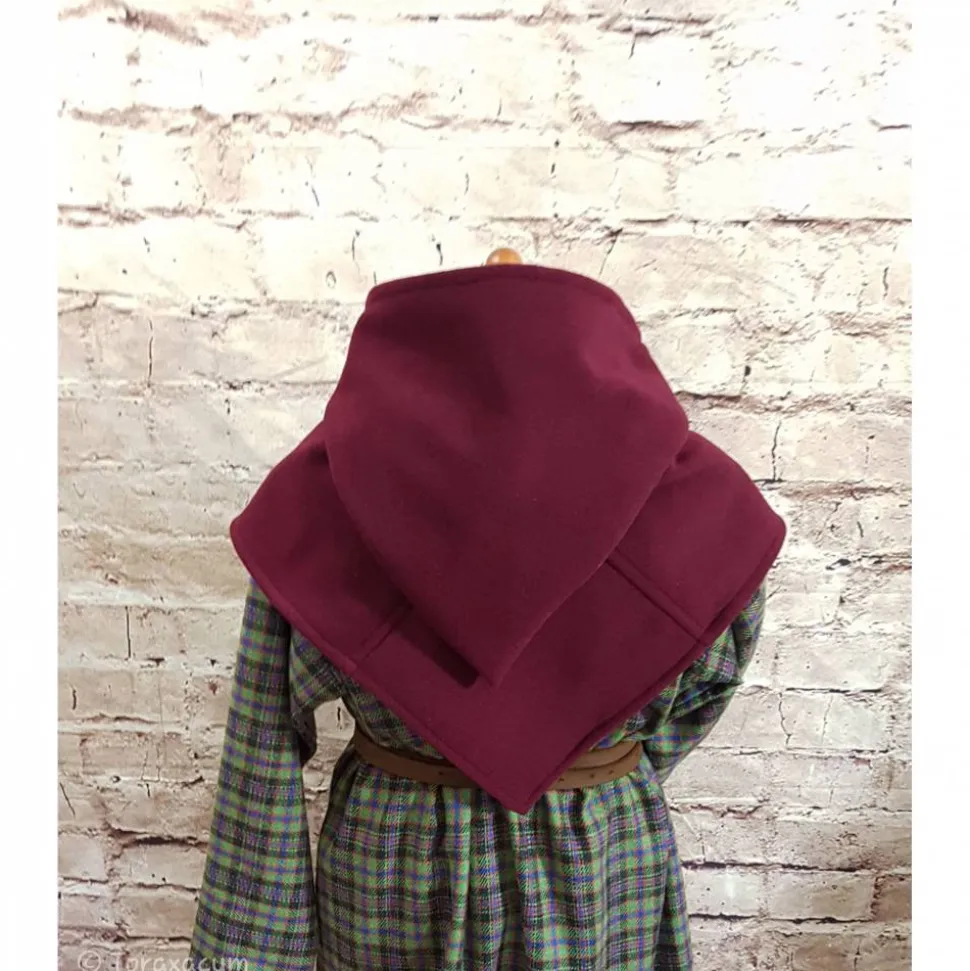 Wikinger Gugel aus weichem Wollstoff in bordeaux.