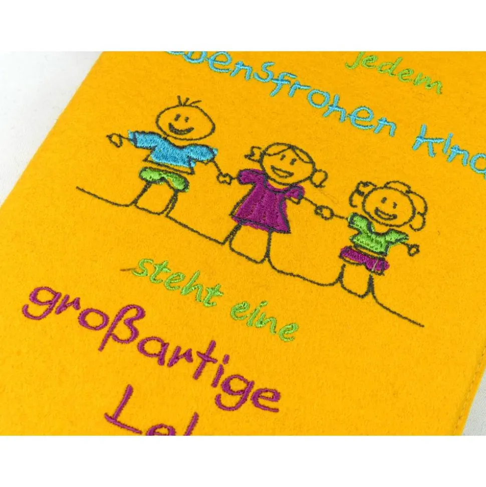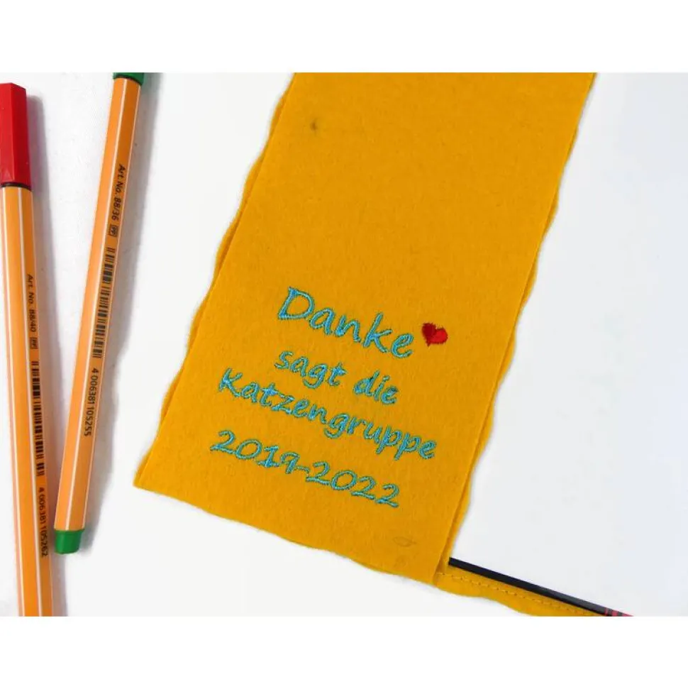 Gerne kann innen, in den Einschlag ein zusätzlicher Text eingestickt werden. Der Preis richtet sich nach der Anzahl der Wörter