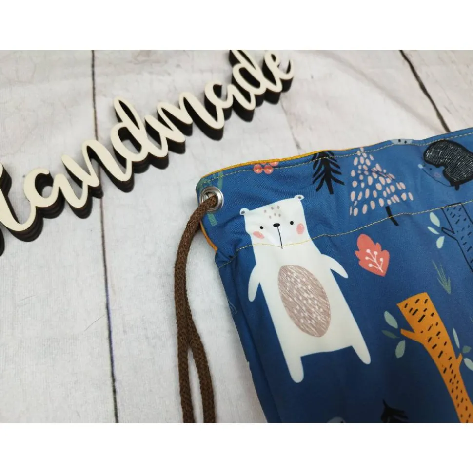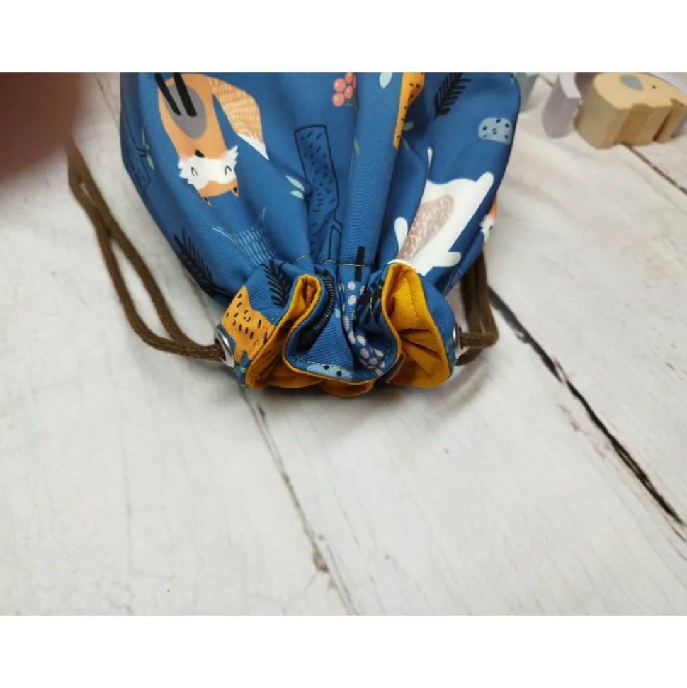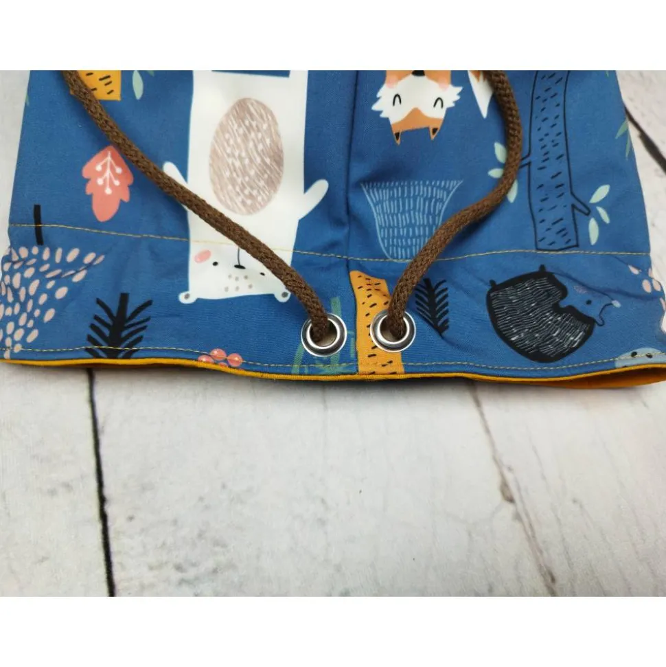 Entdecke den besonderen Kindergarten Turnbeutel Waldtiere petrol mit senfgelb! Dieses Modell überzeugt durch hochwertige Materialien und durchdachtes Design. Außen besteht der Turnbeutel aus Softshell, der wind- und wasserabweisend ist, während die Innenseite aus reiner Baumwolle gefertigt wird. Dank der Vlies-Verstärkung behält der Rucksack auch ohne Inhalt seine Form.