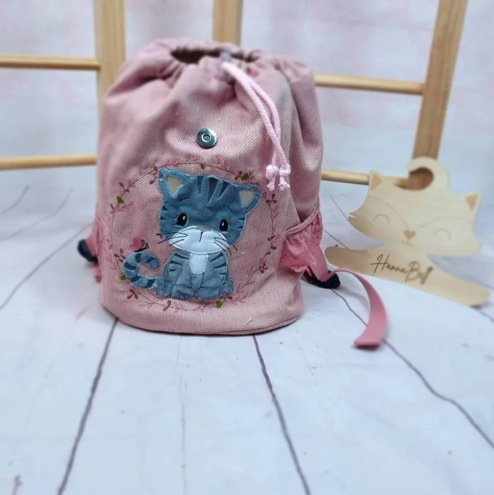 Hier im Beispiel ist es ein Rucksack einem hellen StrukturCanvas in rosa. Gestickt ist eine Katze mit Blumenkranz von Stickherz.Du kannst aber aus vielen verschiedenen Applikationen wählen – schau doch bitte mal in die Bilder 🙂