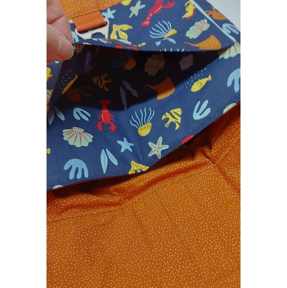 Der Rucksack besteht aus Baumwollstoffen, die mit Volumenvlies gefüttert sind.