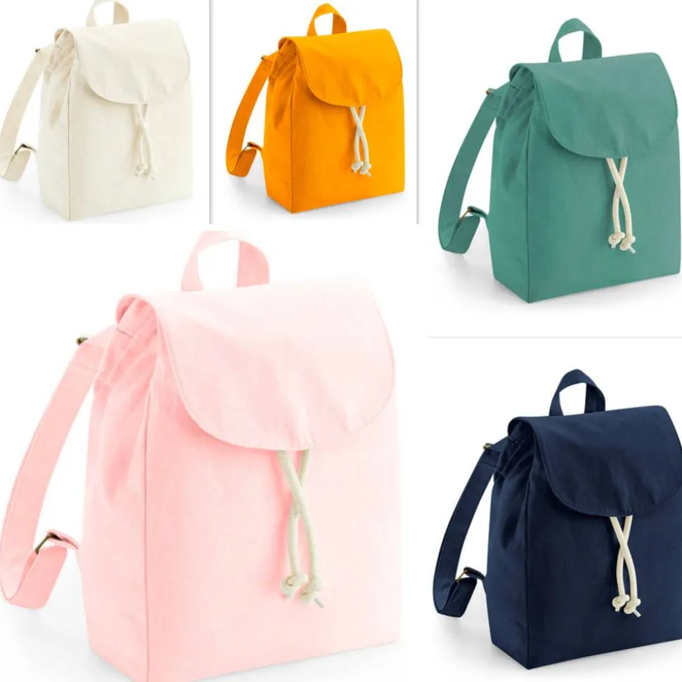 Der Rucksack ist aus robustem Canvas (Bio-Baumwolle), hat oben einen Haltegriff und ein Volumen von ca. 5 Liter. Die Verschlusskappe hat einen sicherem Druckknopf und einen Ziehkordelverschluss. Die Schultergurte sind verstellbar.