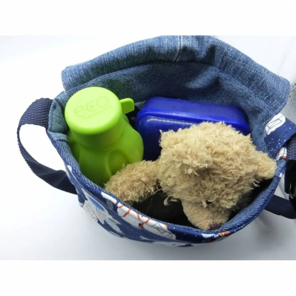 Die Tasche besteht aus hochwertigem Baumwollstoff mit Astronauten und Space Shuttle.