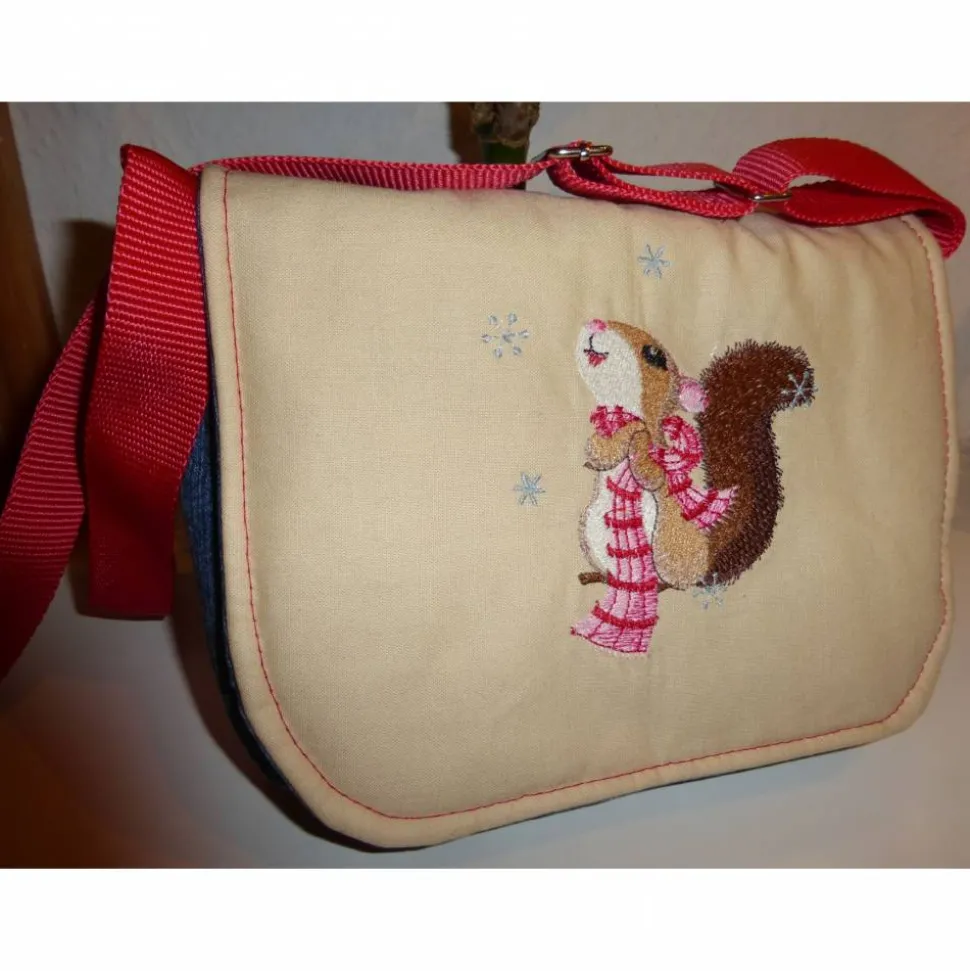 Das kleine Eichhorn hat sich einen Schal umgebunden, denn es ist kalt draußen, die ersten Schneeflocken fallen schon.