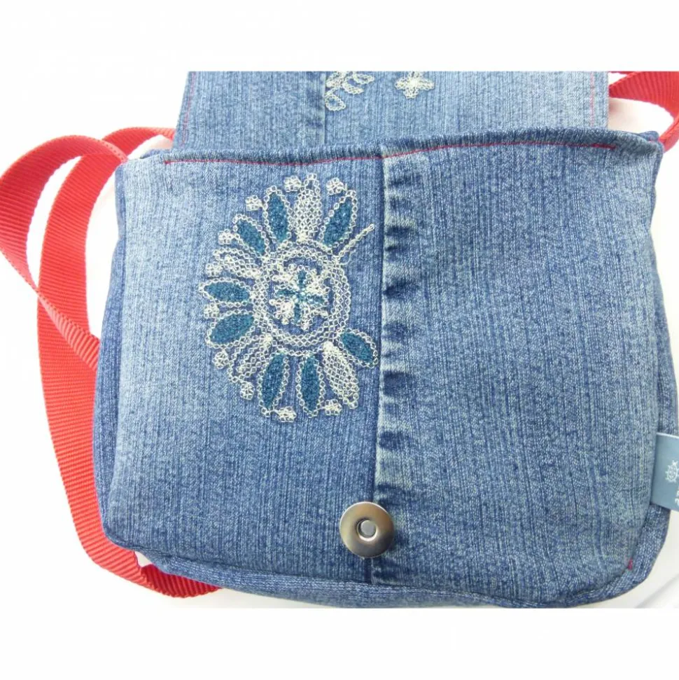 Bestickungen finden sich auch auf der Rückseite sowie auf der Innenseite der Tasche.