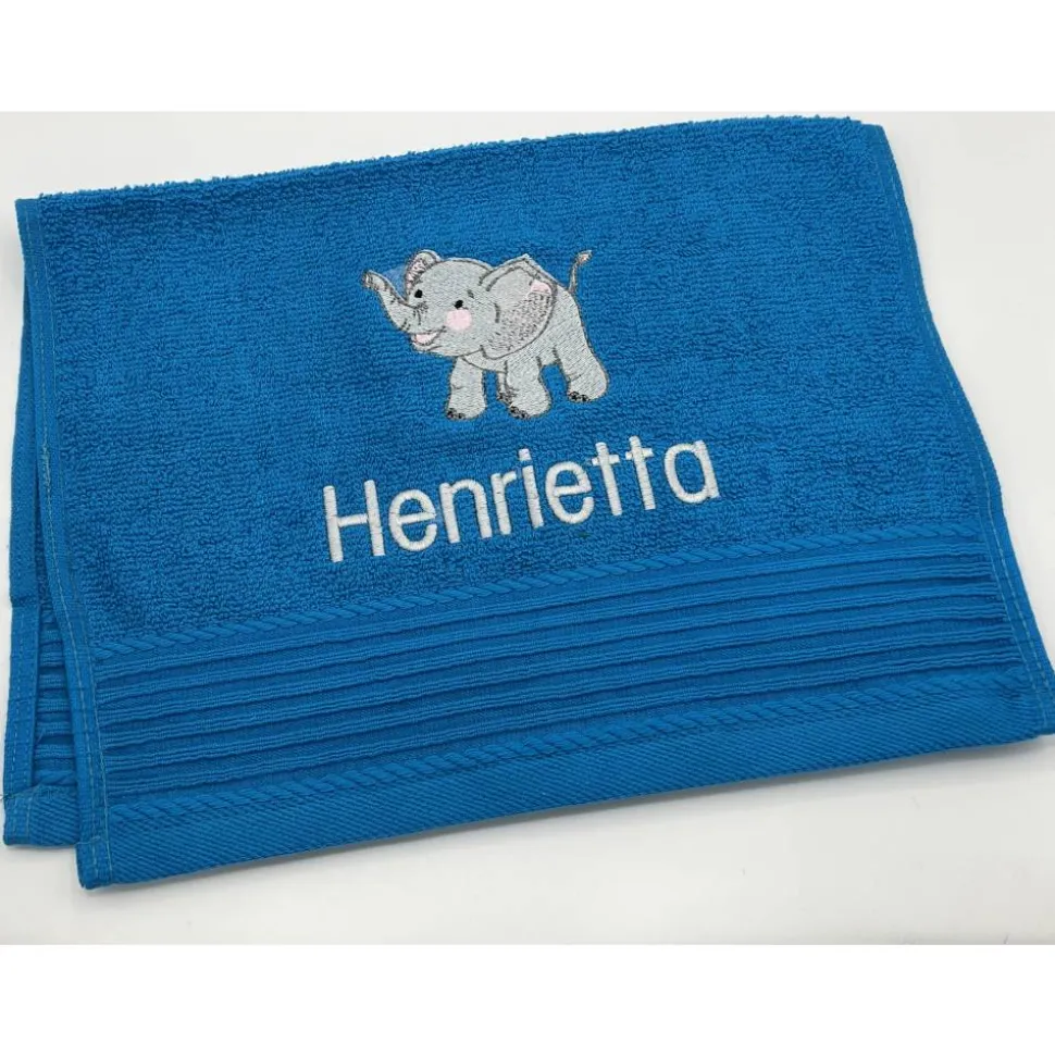 Gästehandtuchfarbe, Stickmotivnummer, Schriftart und Namen .