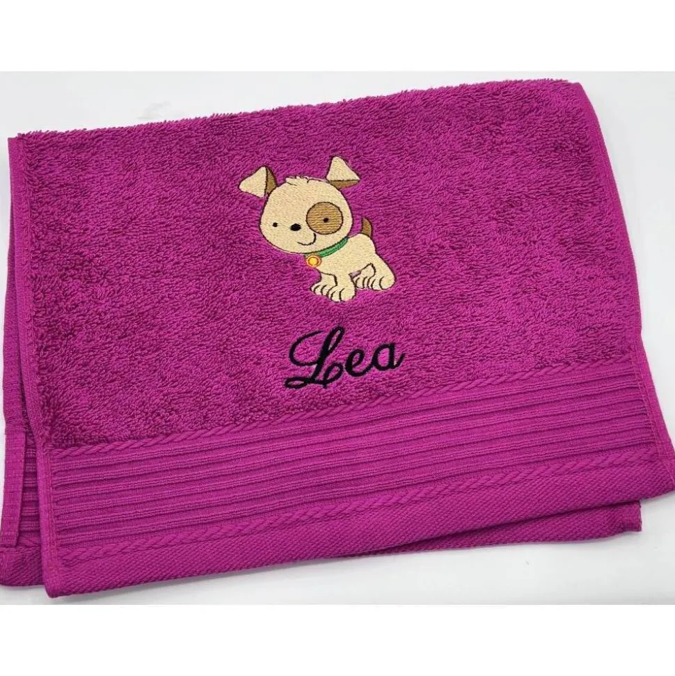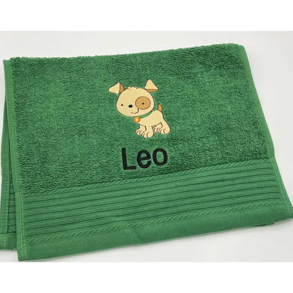 Gästehandtuchfarbe, Stickmotivnummer, Schriftart und Namen .