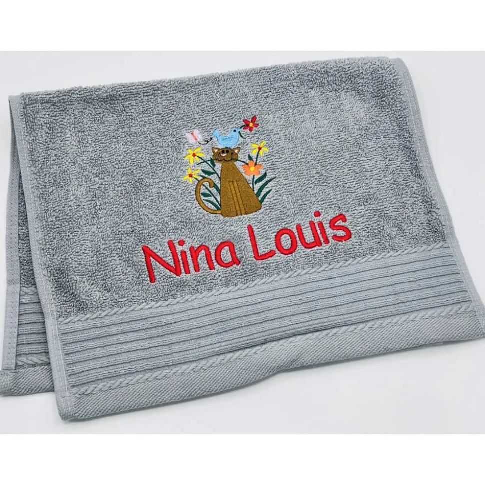 Gästehandtuchfarbe, Stickmotivnummer, Schriftart und Namen .