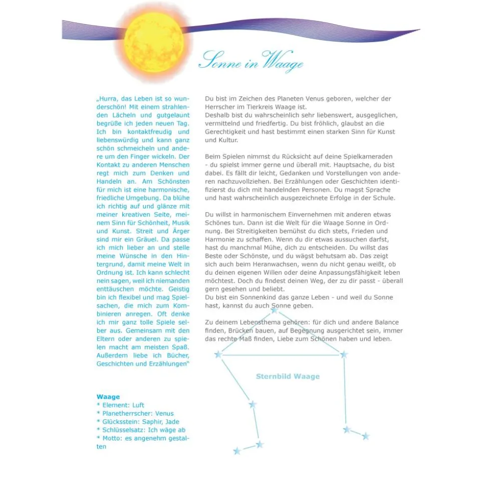 Das Layout ist ähnlich aufgebaut, wie beim Babyhoroskop Geschenkbuch. Die Texte werden altersgemäß angepasst. Es ist sicher spannend für dein Kind zu erkennen, wo die eigenen Stärken, Begabungen, Zielvorstellungen, usw. im Horoskop zu sehen sind. Und die Überraschung ist perfekt, wenn diese astrologischen Erkenntnisse genau der Realität entsprechen.