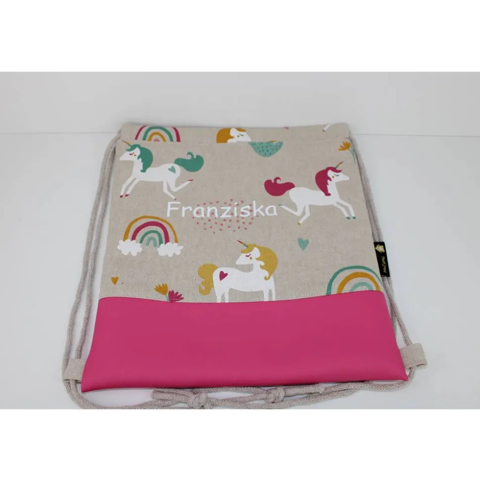 Wir bieten diesen Kinderrucksack auch mit einer Personalisierung an (siehe Optionen). Der Name wird auf dem Oberstoff geplottet. In diesem Fall in weiß. Die Position des Names wird nach Länge und Motiv von uns ausgerichtet.