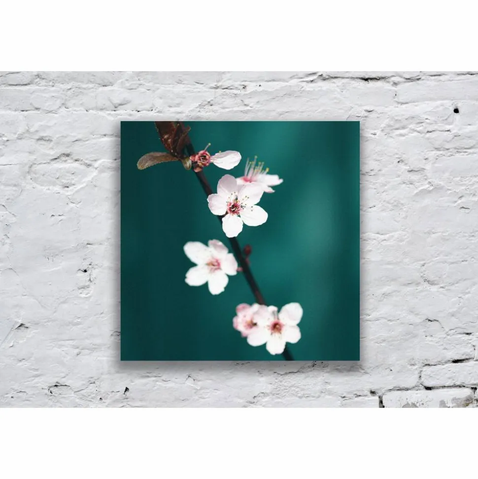 Schöner botanischer Kunstdruck eines Kirschblütenzweiges in intensiven warmen Farbtönen für dein Zuhause.