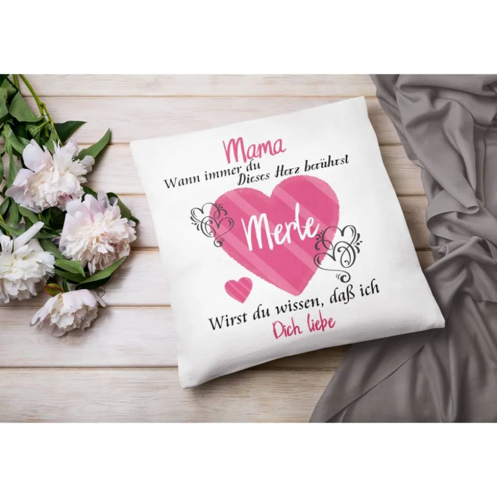 Ihr Mama Kissen mit Hübschen muttertags Motiv . Personalisieren Sie ihr eigenes Kissen mit Wunschnamen und erhalten somit ein Unikat an einem Namenskissen.