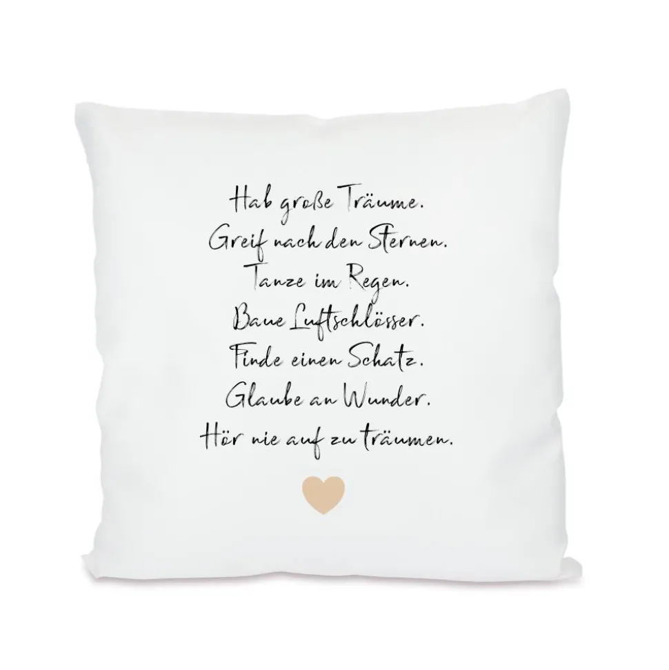 Das Kissen ist mit vielen Wünschen und liebevollen Botschaften beschriftet, die Mut machen und Kraft und Zuversicht schenken wollen. Es ist das handgefertigte und nachhaltige Geschenk von den Eltern, Mama, Papa, Oma, Opa, Tante, Onkel, Freunden und natürlich ein wundervolles und besonderes Familiengeschenk.