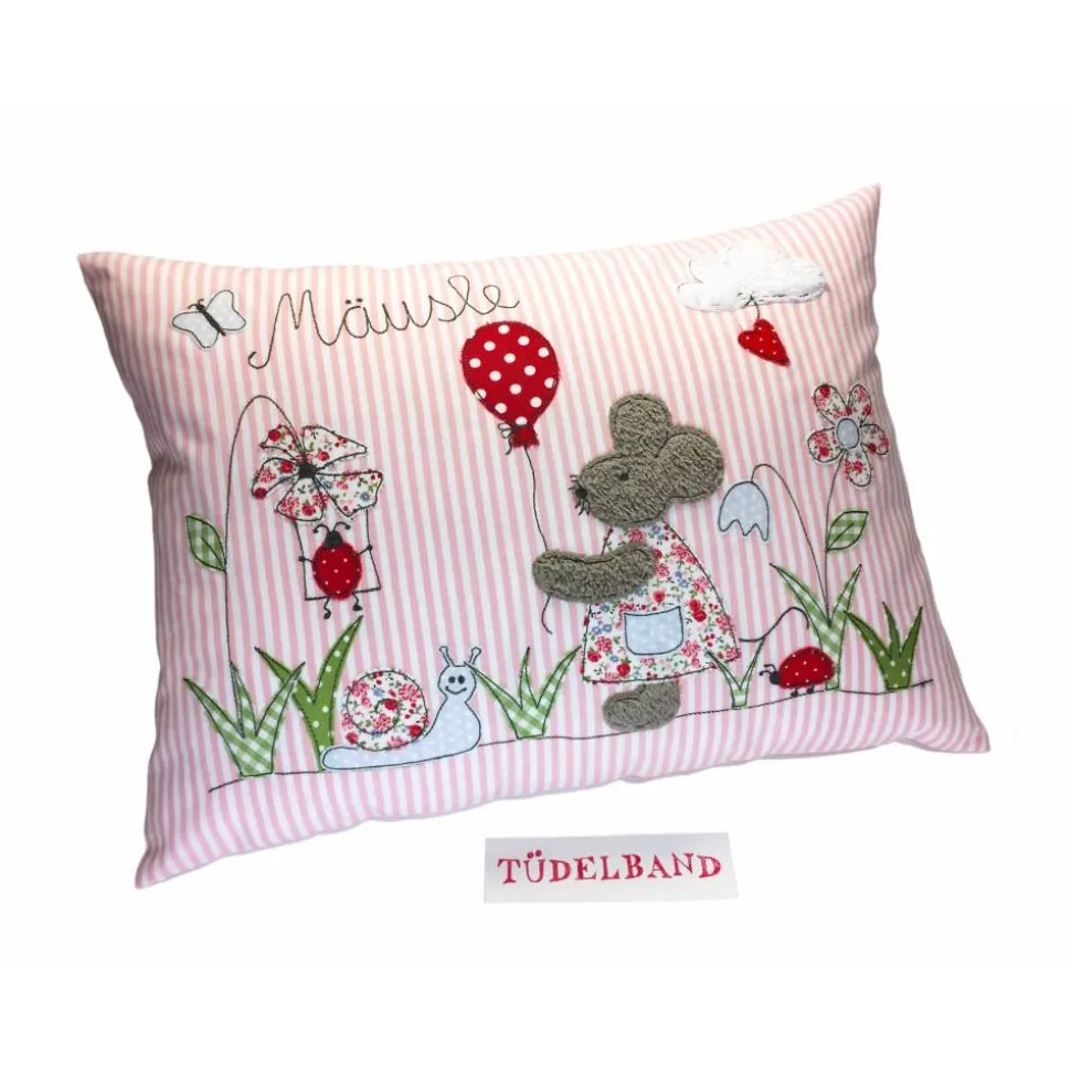 Auf Wunsch kann das Kissen mit einem Namen bestickt werden (wie abgebildet)