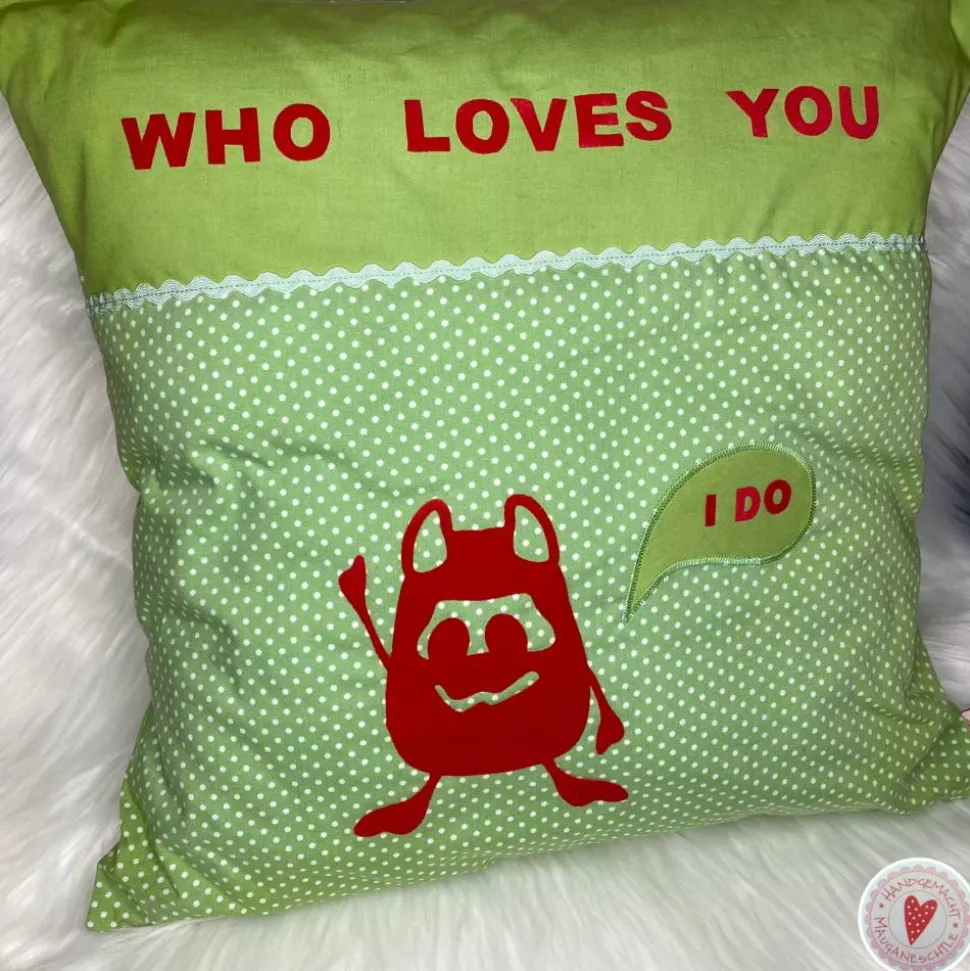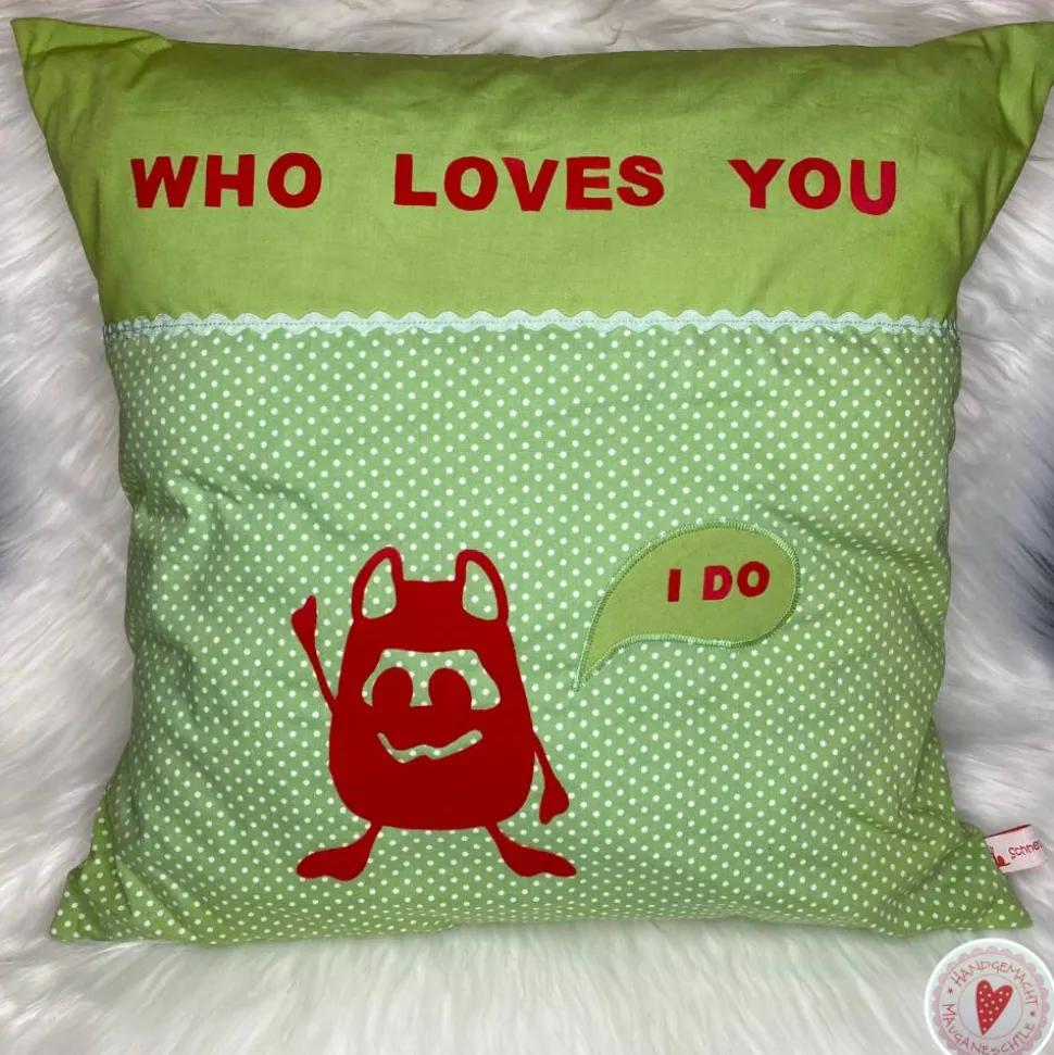 Kissenhülle / „Who loves you“ / 40x40cm / grün